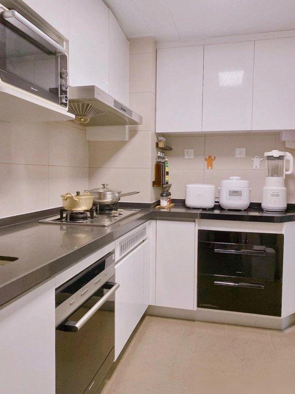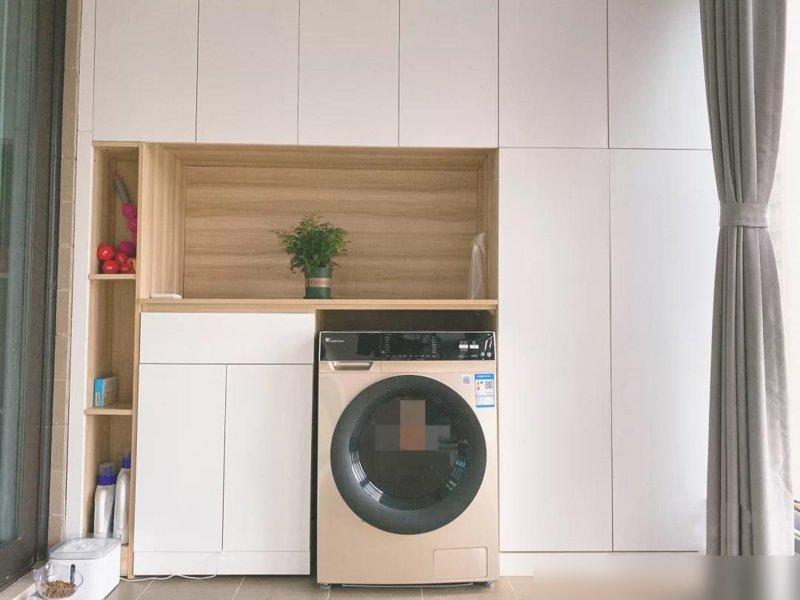 陽臺更會利用:一邊做洗衣櫃,抽屜裝洗衣粉,吊櫃裝清潔工具;另一邊做榻榻米,能坐那曬曬太陽,抽屜裝襪子內衣——陽臺不是隻能晾衣服,還能當小休閒區,這腦子咋這麼靈呢?