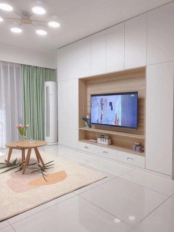 先說說最戳我的“收納邏輯”:不是爲了“裝得多”而打櫃子,是“你需要什麼,就給什麼留位置”。比如客廳的電視牆,直接做了到頂的純白色無拉手櫃,把電視嵌進去,下面留空裝機頂盒、遙控器——現在很多人家電視牆要麼空着積灰,要麼擺一堆擺件顯得亂,老人倒好,直接“把亂的都藏起來”,既保持了牆面的乾淨,又不耽誤用,這不比那些“爲了好看而浪費空間”的設計實用一百倍?