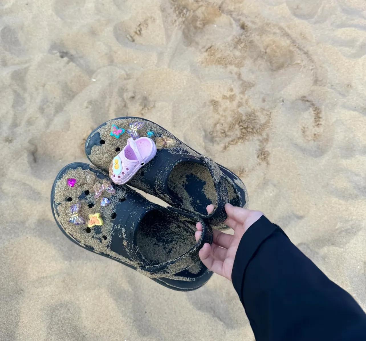這回我們去馬爾代夫,四個人四雙洞洞鞋, 沙子隨便踩,輕輕衝一下即可,隨時拖鞋隨時穿,溼了也不怕,真的超級方便啊。