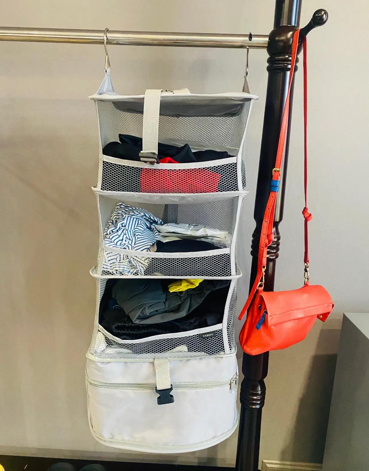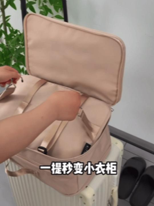 如果你選擇在這個包包裏裝衣服,那它就是一個懸掛的小衣櫃,方便拿取。