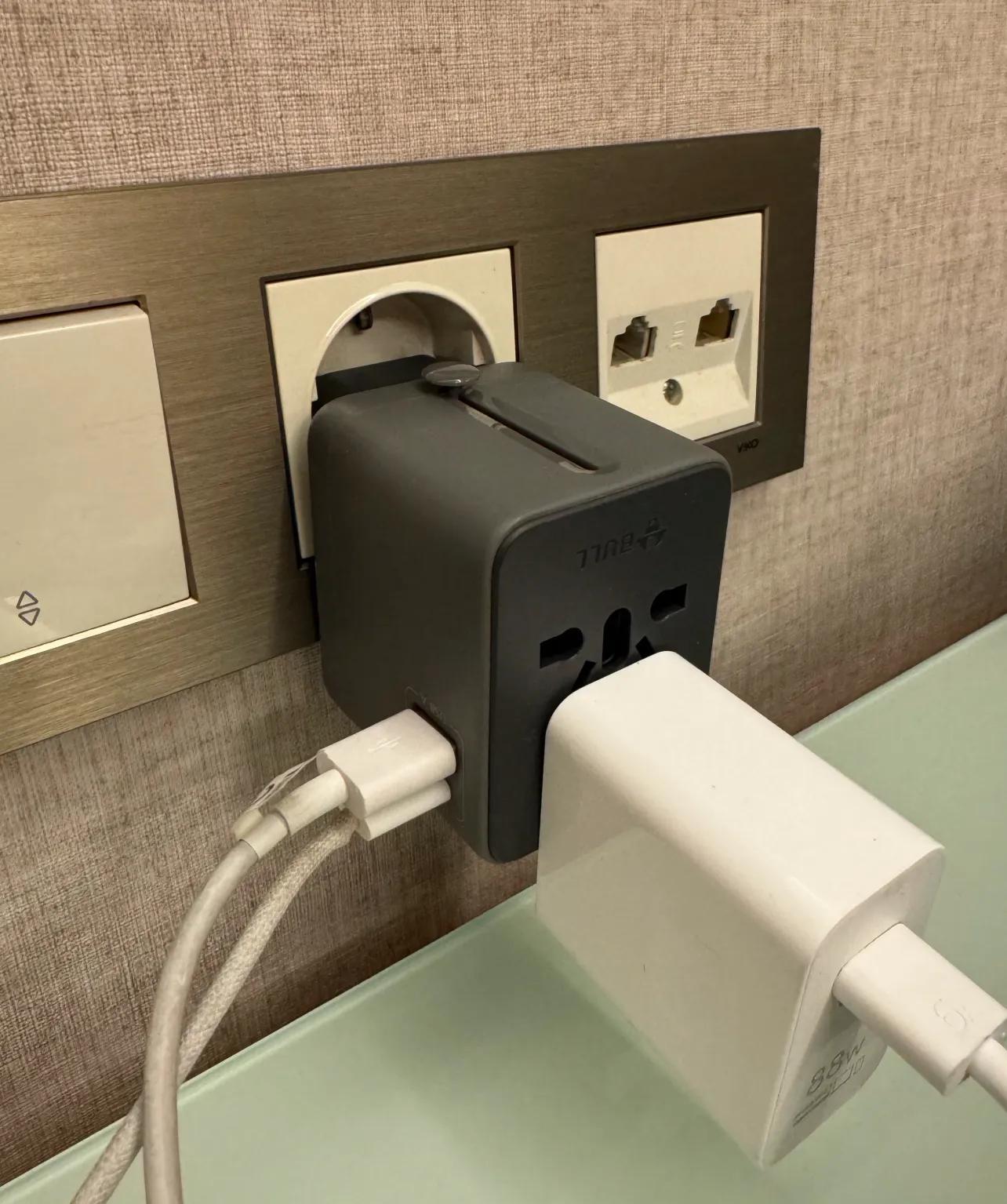 又但是,你難包某些國外的楞頭青酒店,沒這轉換頭,我們最後一個在居民島的酒店就碰到了,沒有轉換頭,也沒有c口,問前臺怎麼辦,它們說有usb口可以充電,可是我們沒有usb線啊……