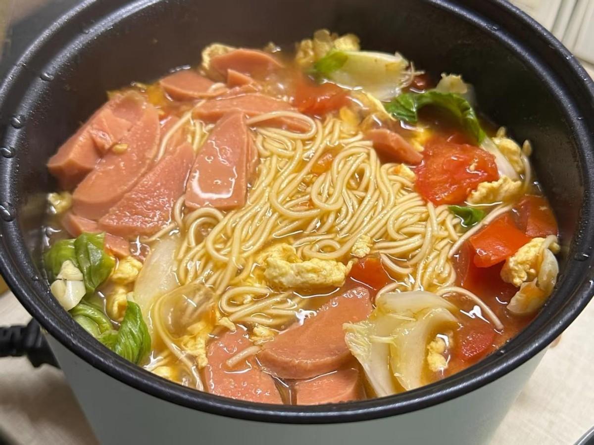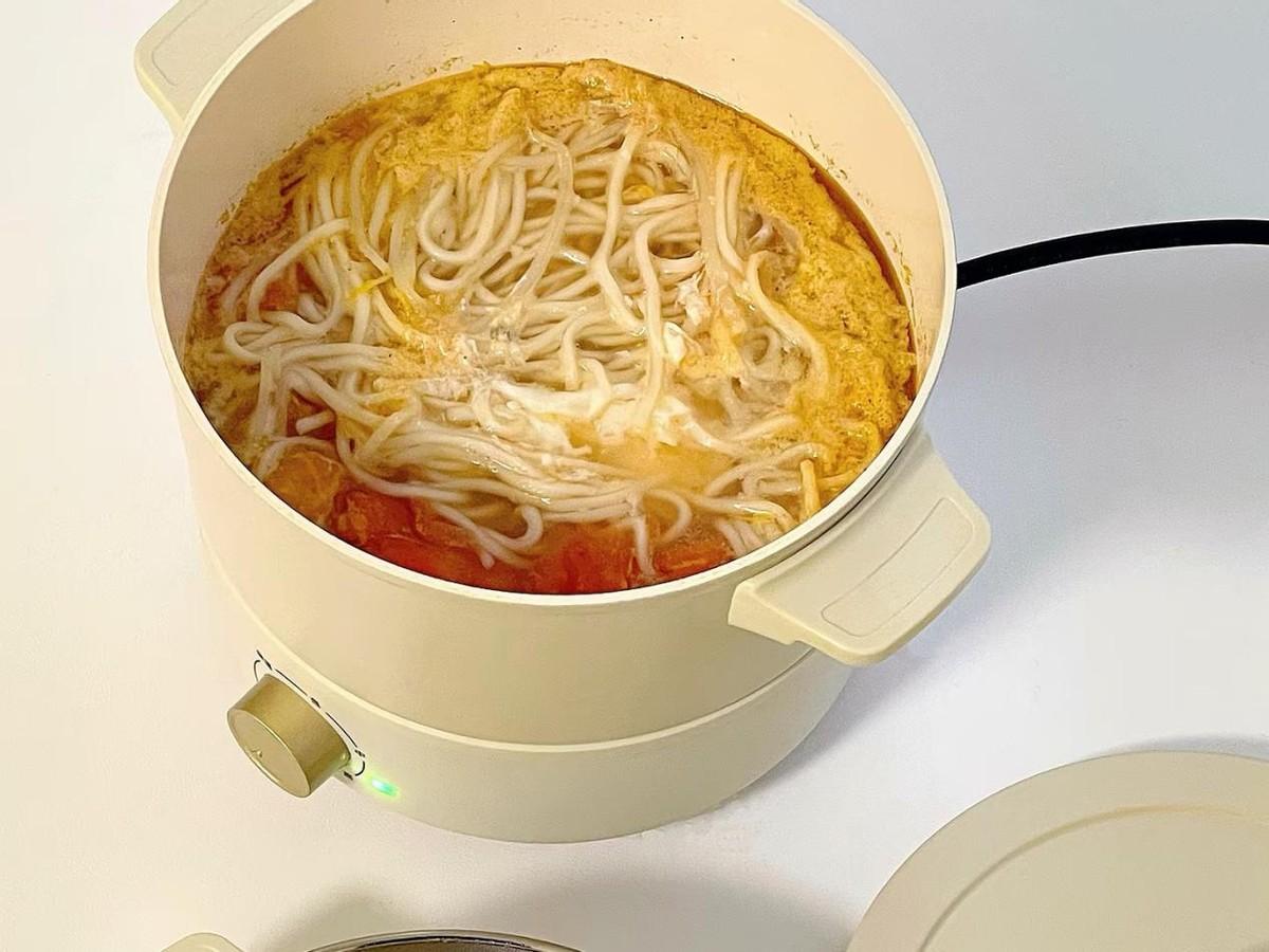 如果午飯喜歡喫麪條,那麼電煮鍋同樣也不會讓你失望,它的加熱速度很快,水量也容易控制,還不容易溢鍋。