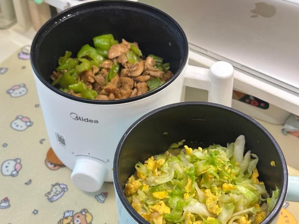 電煮鍋同樣還可以解決午飯。將主食和菜餚同時烹飪,不僅節省時間,而且清洗量也少。