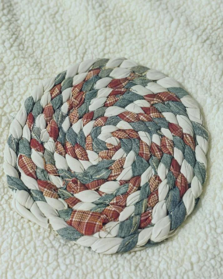 還是把衣服先洗乾淨,然後拿剪刀全部剪成“布條”,擰成麻花辮,你看,一個兼具美觀和實用的“坐墊”就做成了!