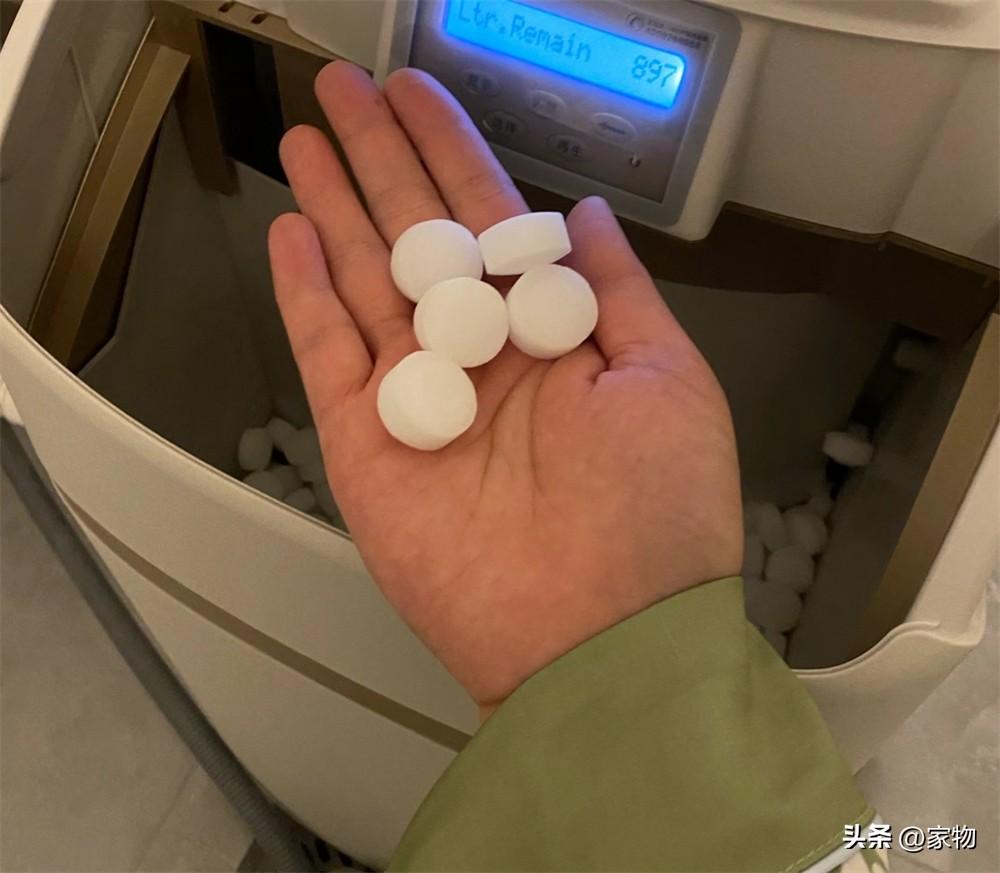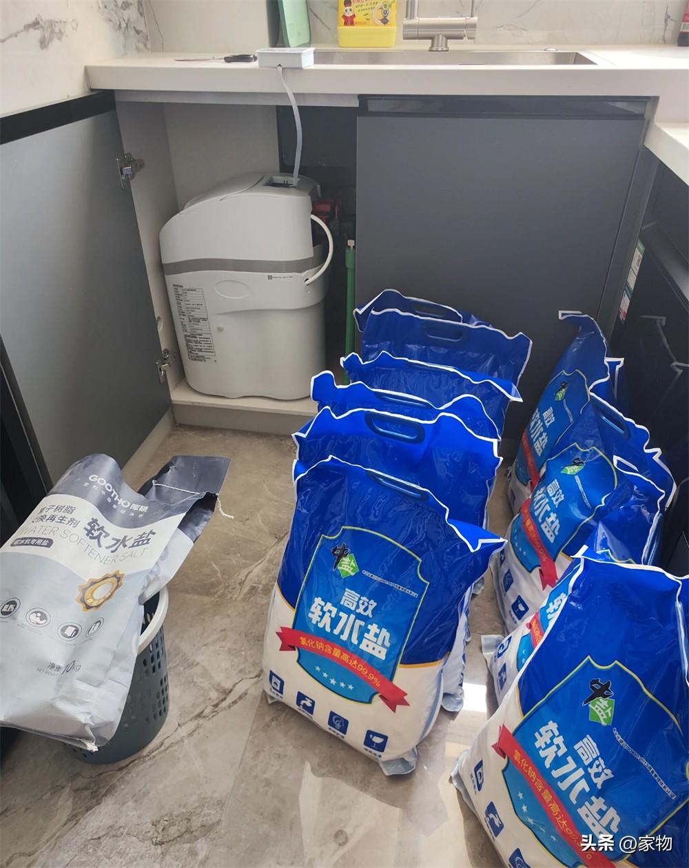 還有一點我不能接受的,是軟水機需要加軟水鹽,用來維持過濾樹脂的正常使用,關鍵它耗鹽量還不少,具體和家庭用水量有關。