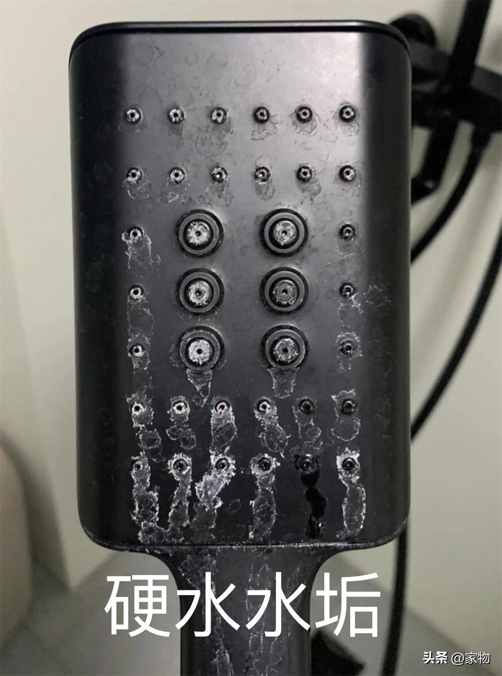 像是花灑頭堵塞、衛浴潔具檯面上水漬,包括燒水後一股鏽味,這些都是硬水原因,用軟水機後能得到明顯的改善。