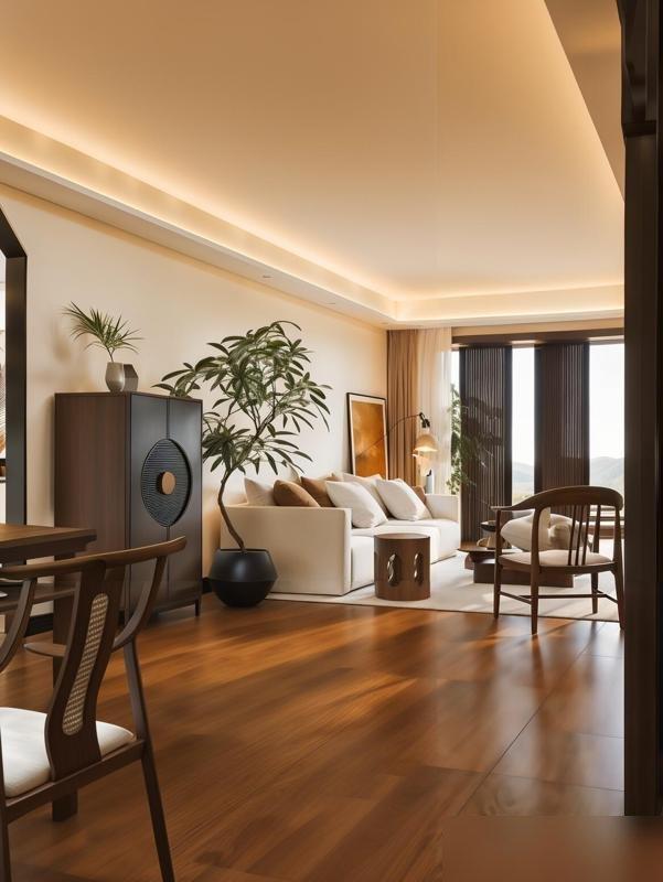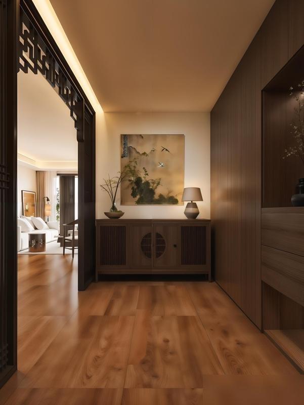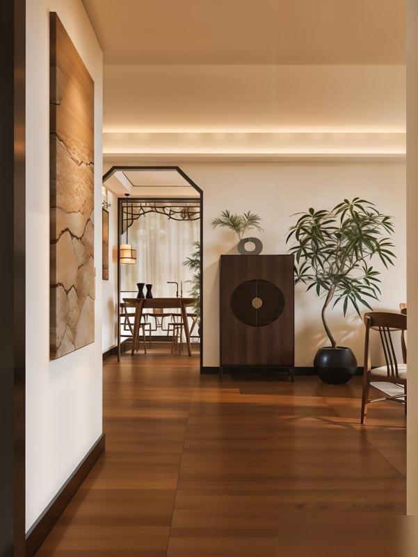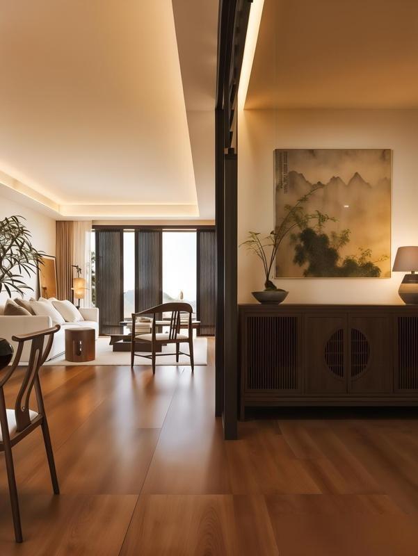 那戶的牆沒刷死白,是帶點米調的暖白,像曬了太陽的棉麻,看着就軟乎;地板是深實木的,不是亮得能照人的強化複合,表面有自然的結疤,踩上去的腳感像踩在老家老槐樹下的土坡,踏實得能接住所有疲憊。