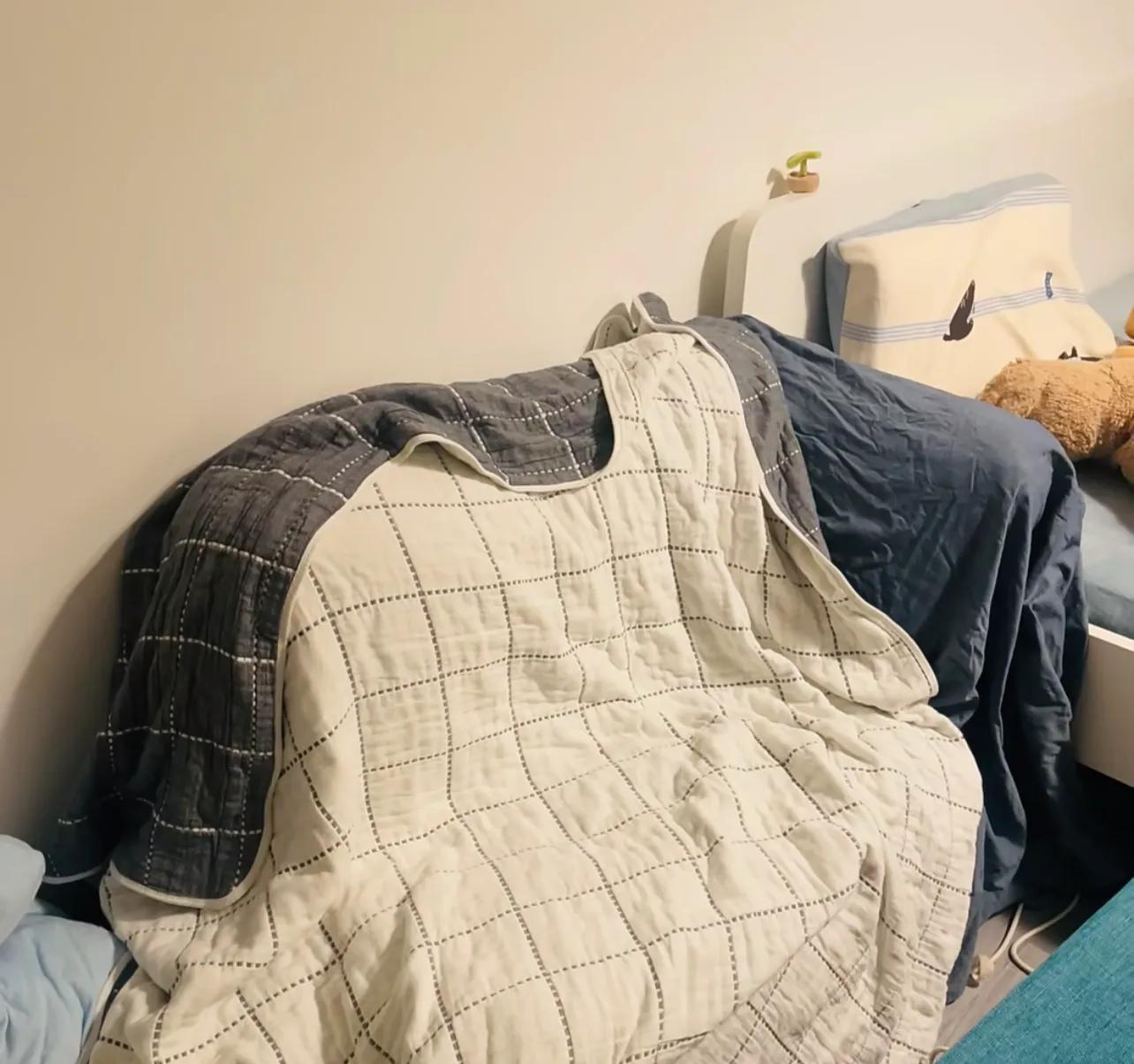 行李箱當底座,再找個墊子往牆邊一靠當靠背,最後罩幾塊布,潦是潦草了點,但未必不是應對流動生活的天才腦瓜!