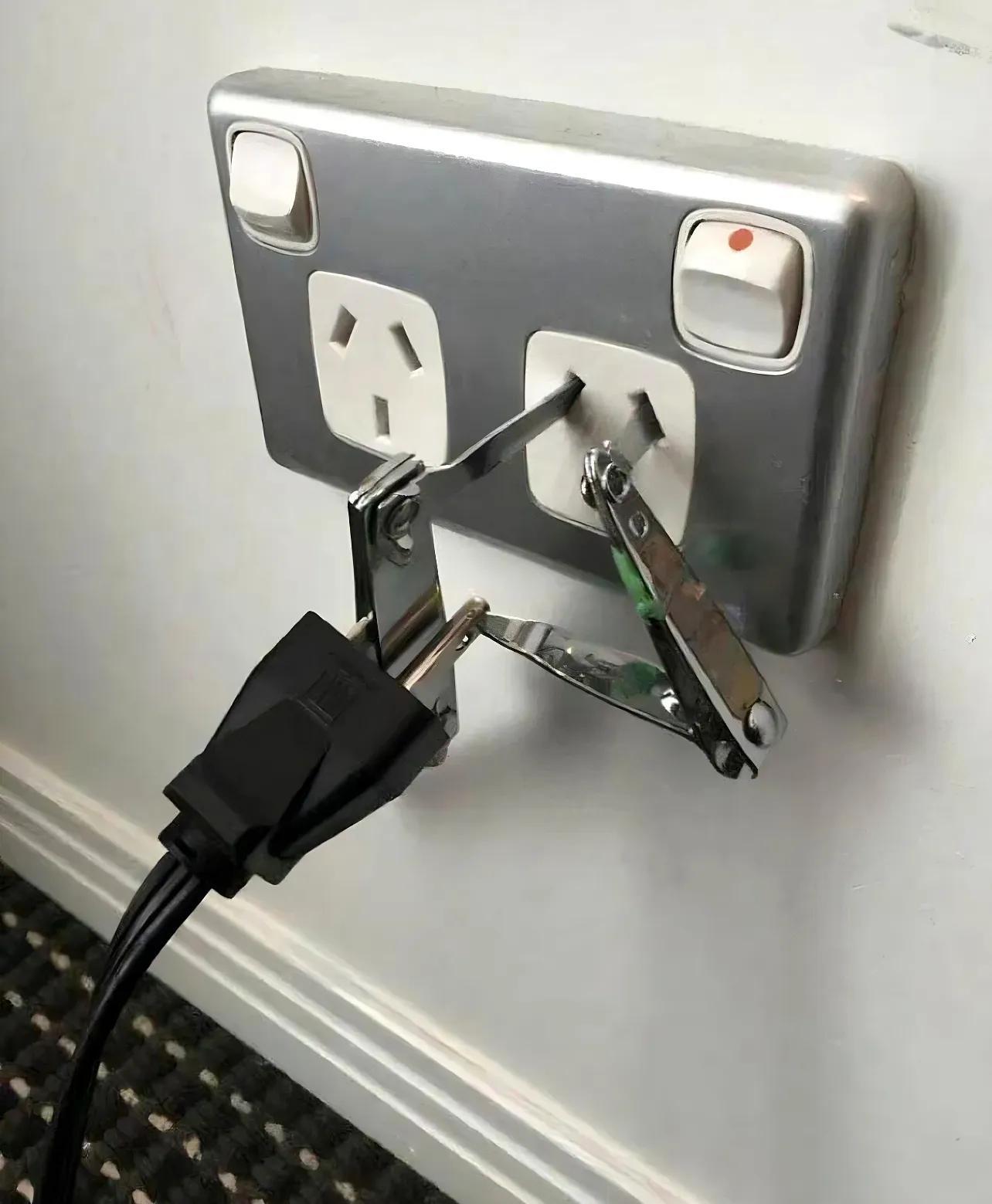 雖然很機智,但強烈不建議模仿!這屬於典型“有點物理知識但不多”的反面教材,沒有絕緣保護還是有風險的。