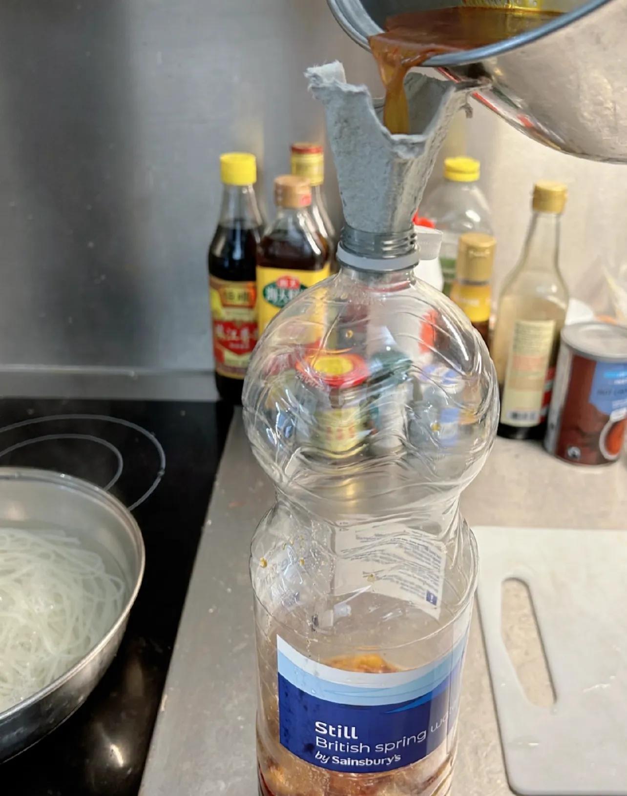卡在瓶口,倒油灌湯妥妥的,用完即扔,省錢省事。