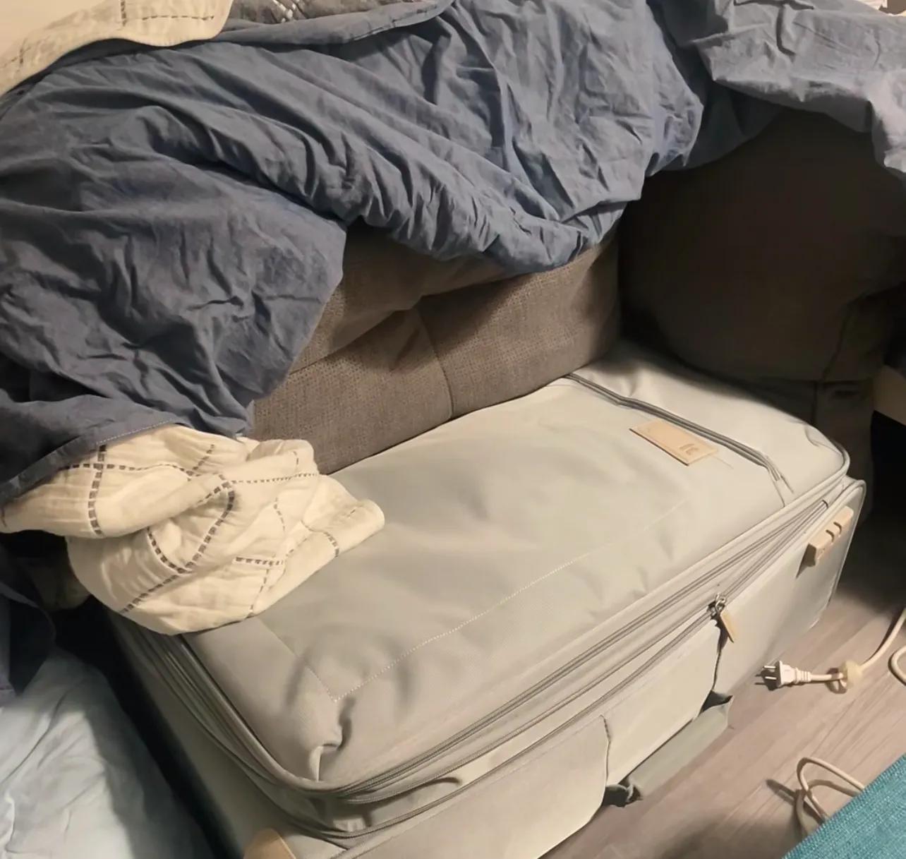 行李箱當底座,再找個墊子往牆邊一靠當靠背,最後罩幾塊布,潦是潦草了點,但未必不是應對流動生活的天才腦瓜!