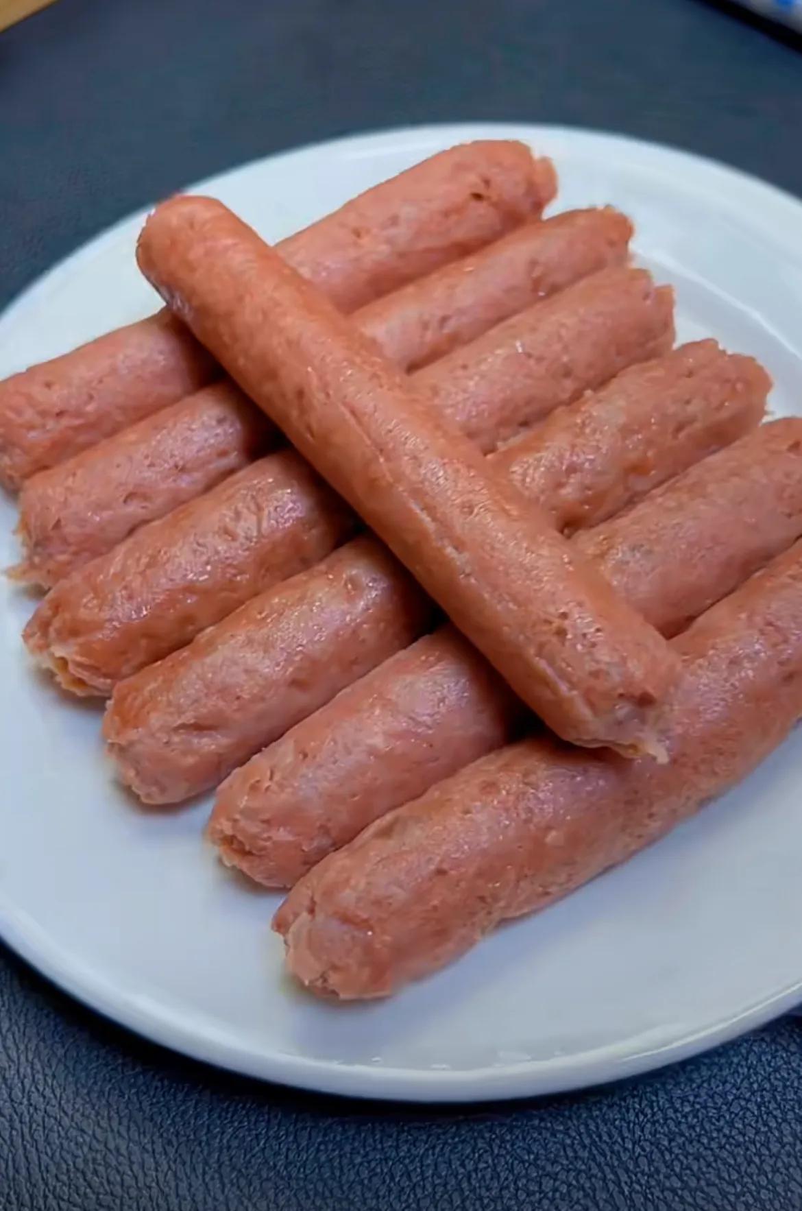我現在但凡買肉餡,都會順手做幾根香腸,凍進冰箱,想喫的時候拿出來一烤,外焦裏嫩,安心又方便。