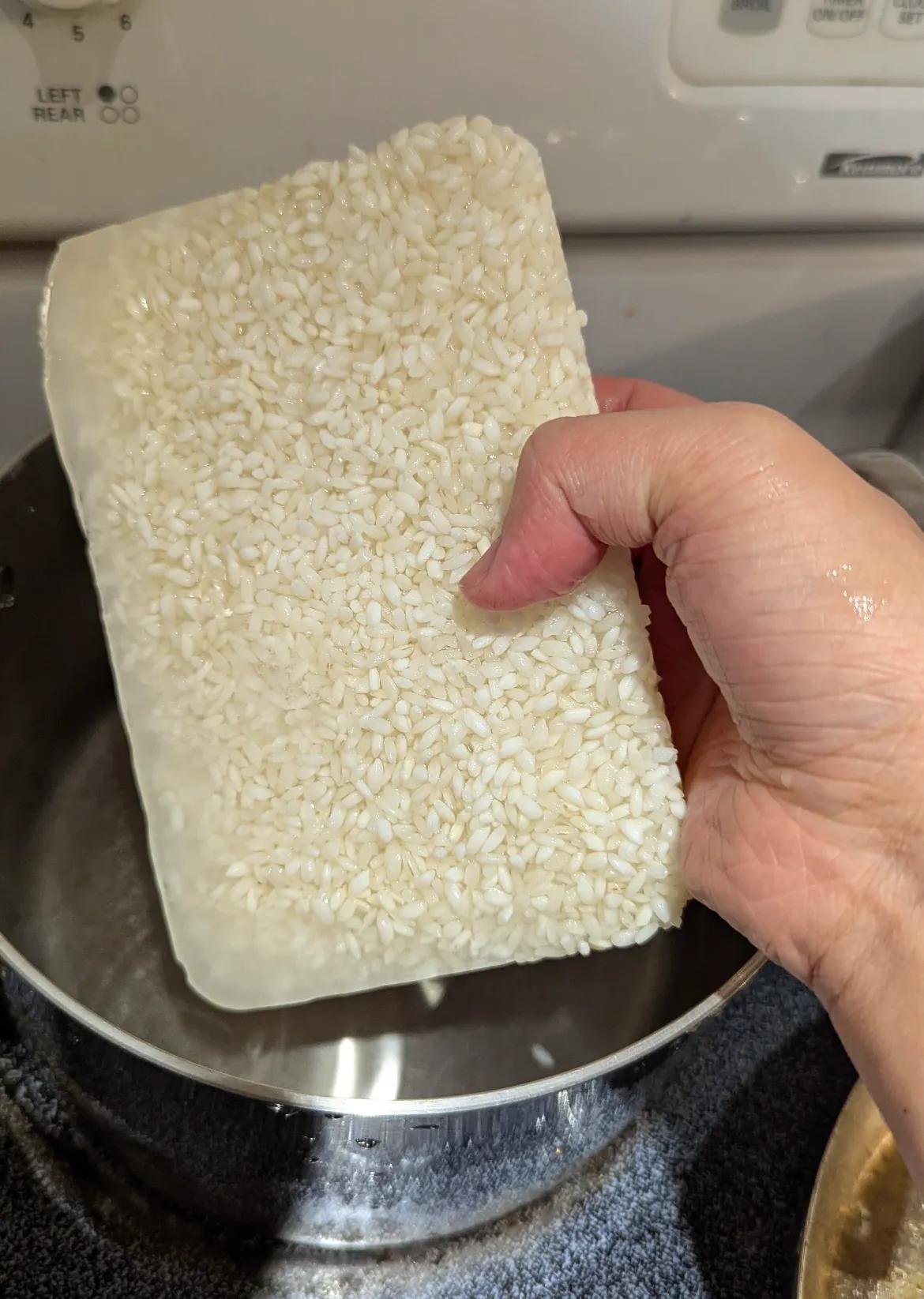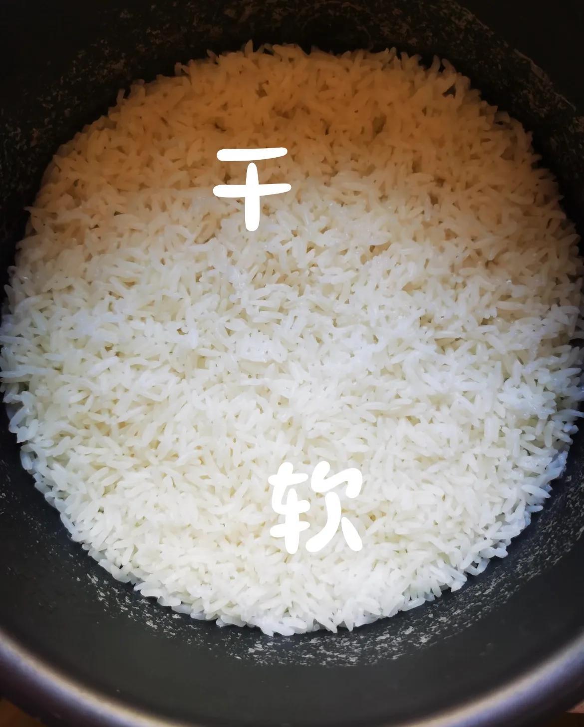 米下鍋後,用飯勺把米撥成一邊多一邊少,多的那側水少,煮出來的就硬,而少的那側水多,口感則偏軟,屢試不爽。