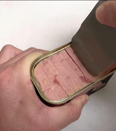 開午餐肉罐頭,手撕費勁,刀開怕割手,每次開罐那叫一個驚心動魄。
