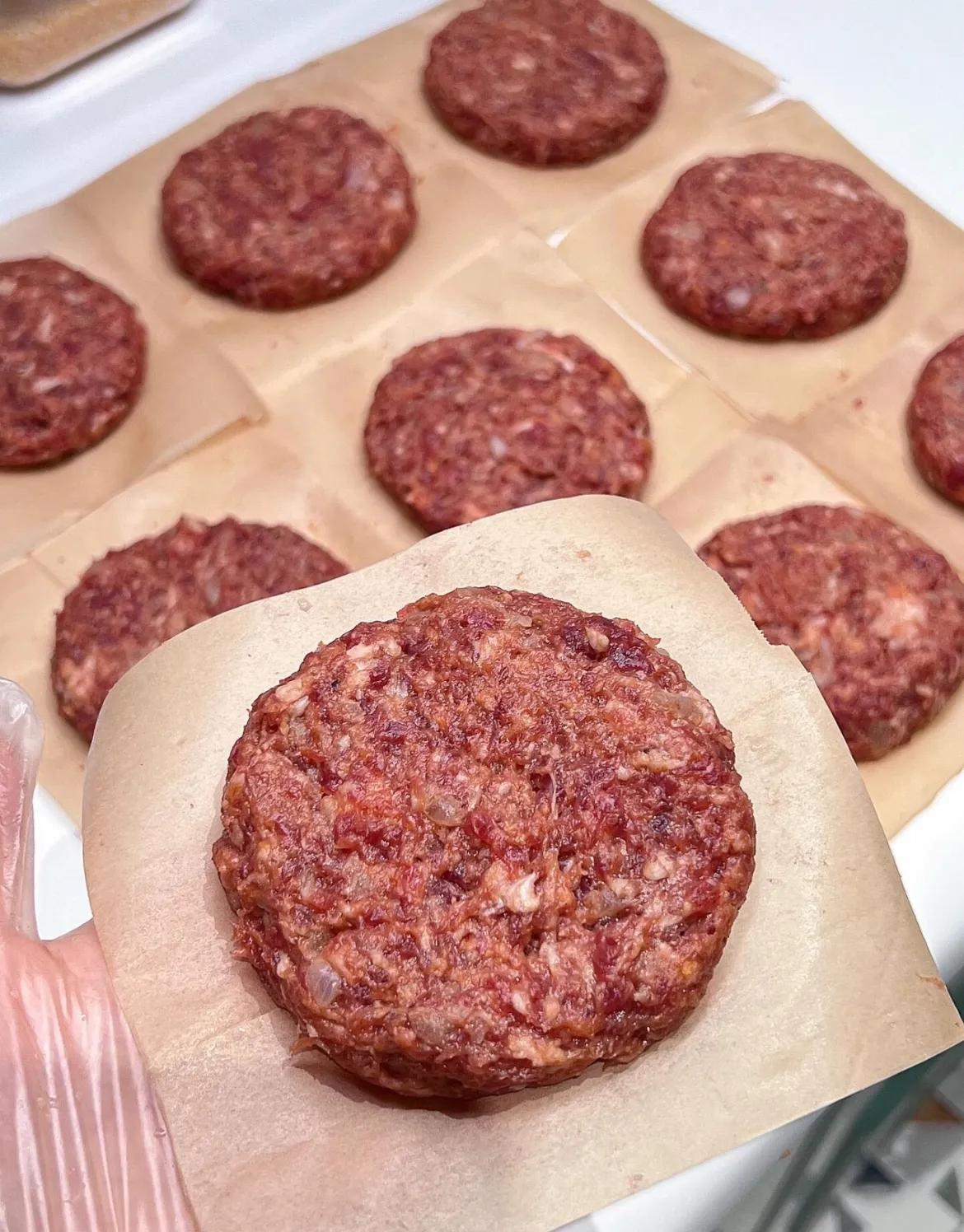 多做的肉餅,還可以順便用保鮮膜一裹,直接冷凍,每個肉餅間都有保鮮膜分隔,所以隨喫隨取,之間不粘不散。