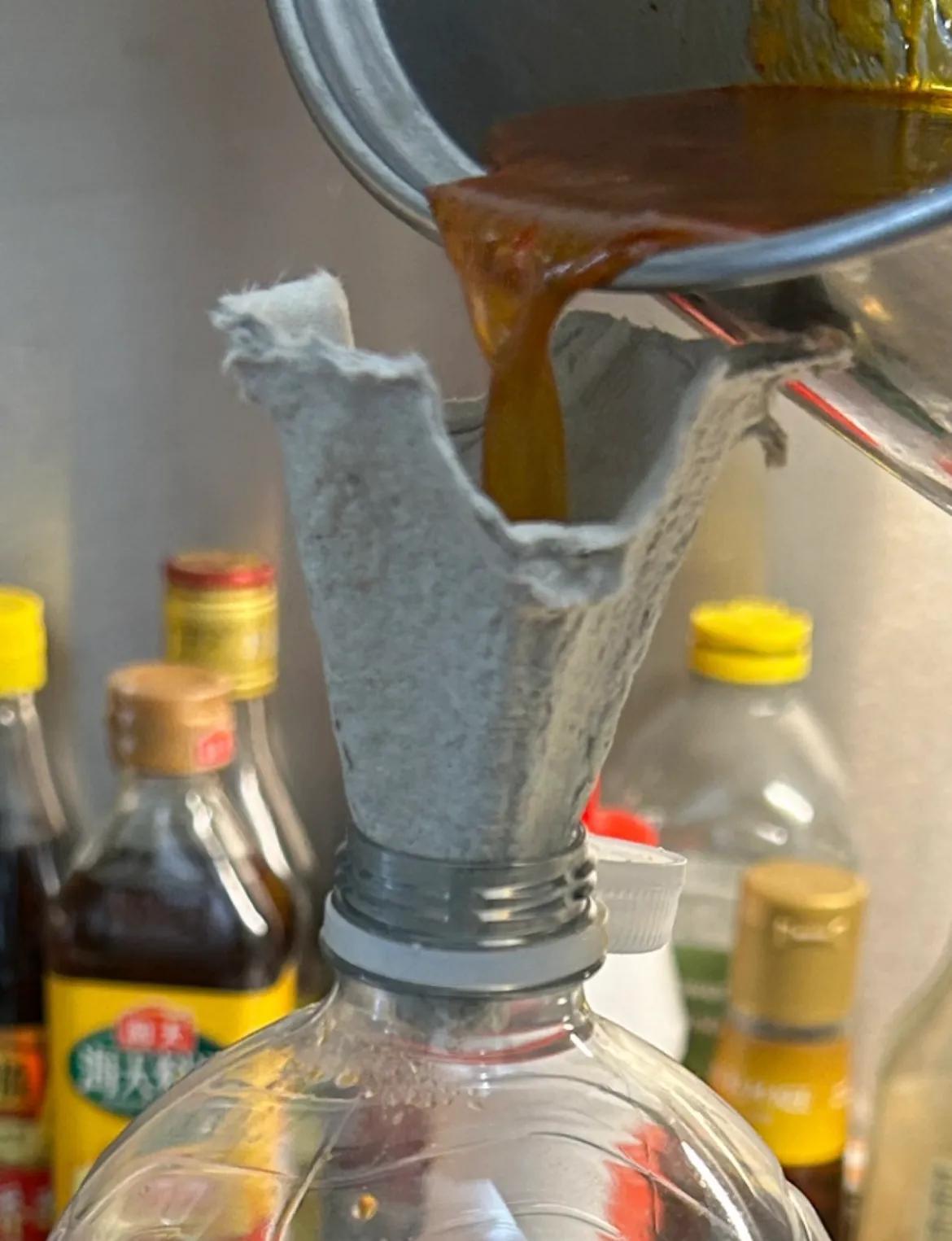 別糾結了,試試這個方法:將火鍋湯底的料撈淨,油湯用漏斗灌進塑料瓶裏,擰緊蓋子,再扔垃圾桶,整個過程不到兩分鐘,既杜絕了家裏堵塞的隱患,又不會給保潔清掃帶來麻煩。