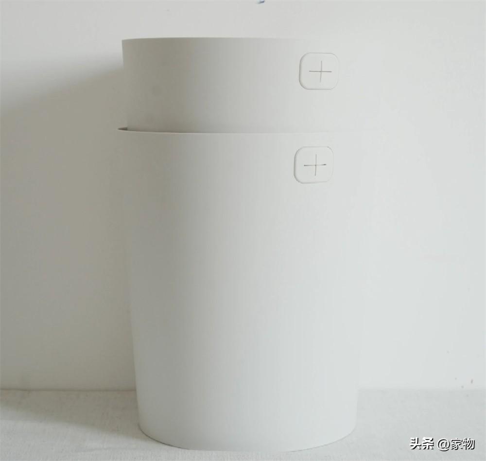 這垃圾桶外觀就是簡單的磨砂白色,唯一不同的是在桶口多了兩個硅膠的十字卡扣,在套上袋子後,可以將袋子按壓到裏面進行固定,不僅用起來很方便,同時也能避免扔垃圾的時候袋子亂跑。
