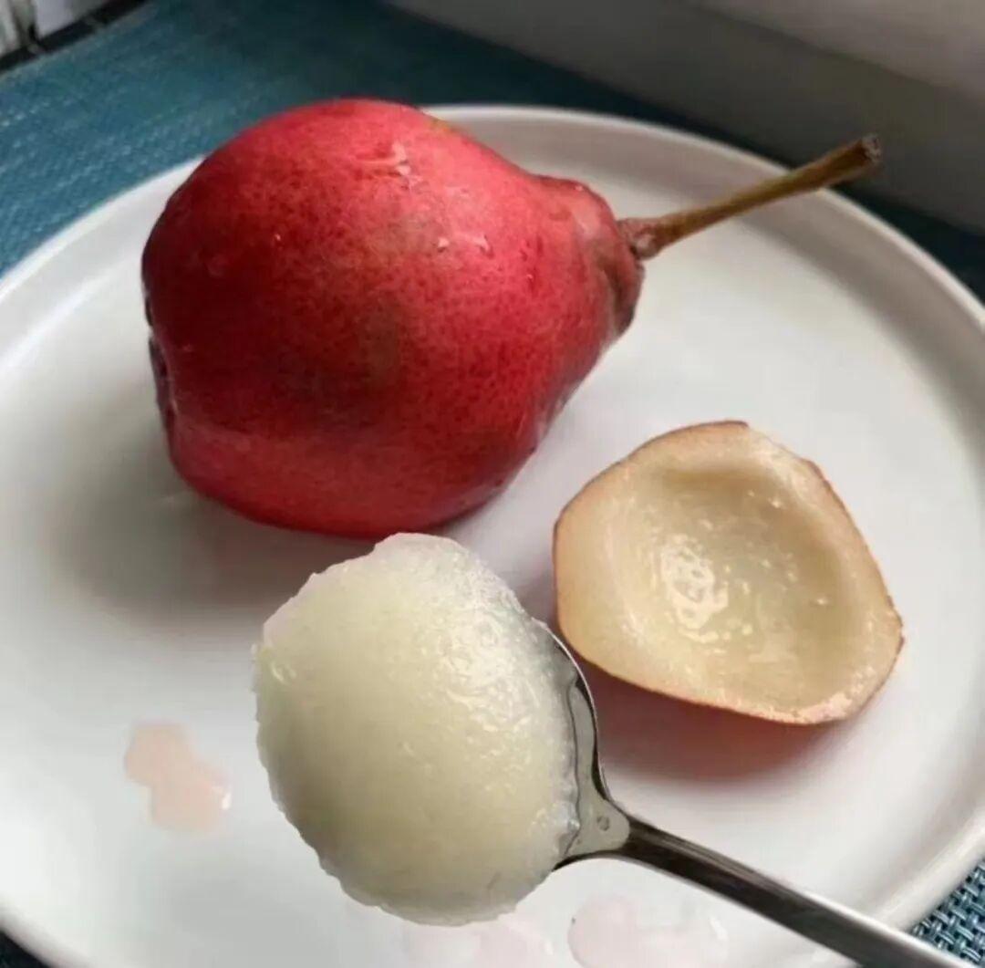 我按照方法操作,終於在一個清晨,我發現梨子變得柔軟而富有彈性。