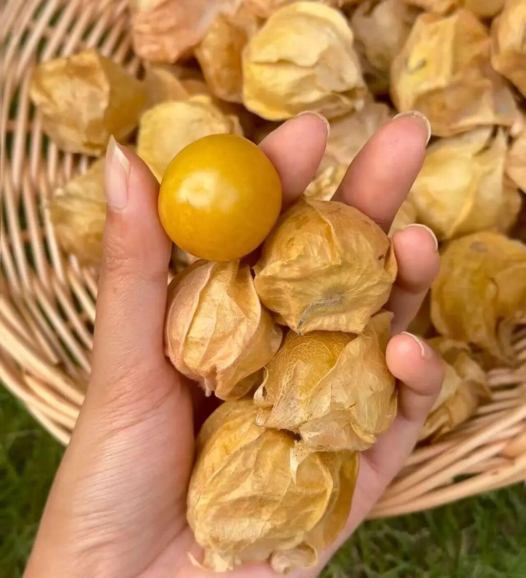 我心頭好奇,姑娘果?買了一斤嚐嚐,剝開外衣,首先露出金黃色的果實,大小如同櫻桃般可愛。