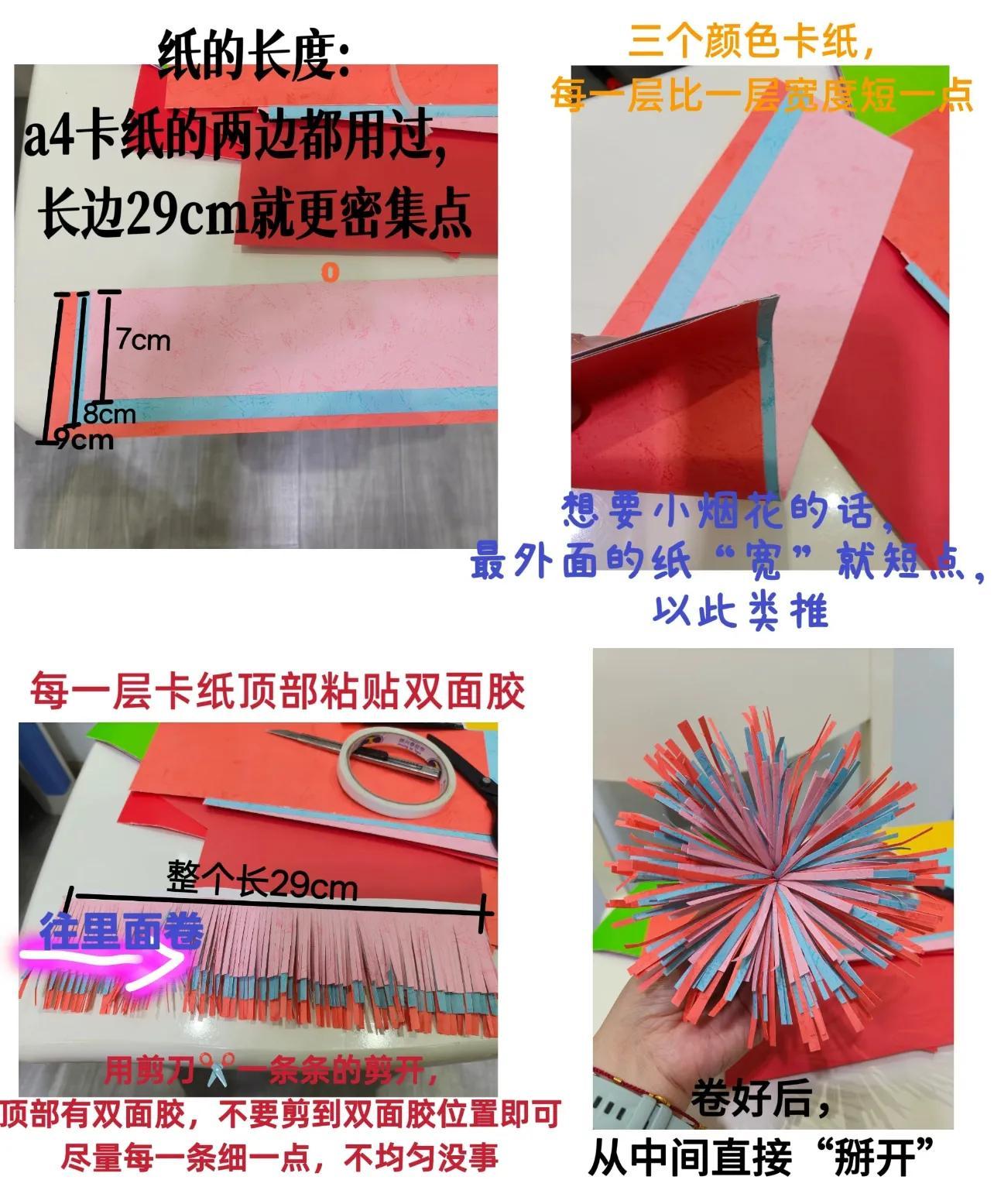 TIPS:爲了更有氛圍,可以剪點不同顏色的卡紙,貼在煙花筒的周圍,更有氛圍。