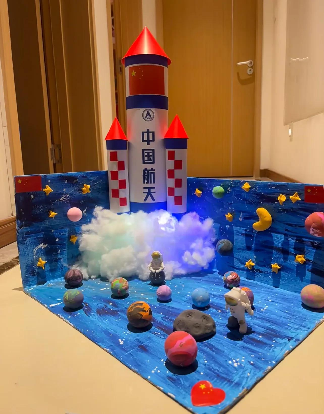 繼去年的嫦娥六號之後,今年我們的航天探索又有新進展,神舟二十號圓滿發射,商業航天有所突破,這樣的成績,當然值得一個被認真對待的幼兒園手工,於是就有家長搞出了豪華版幼兒園手工!
