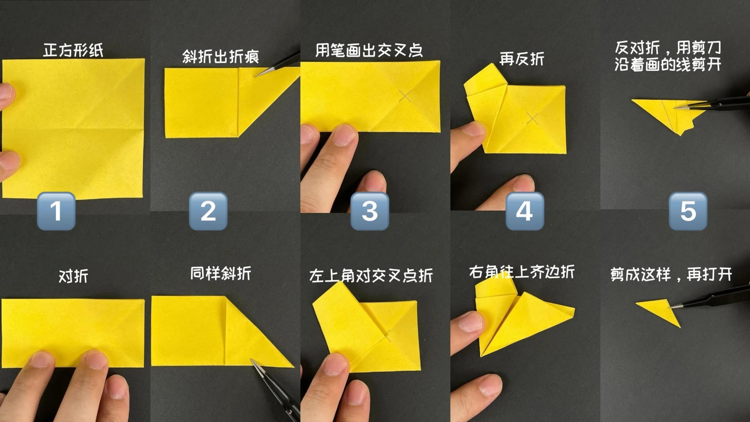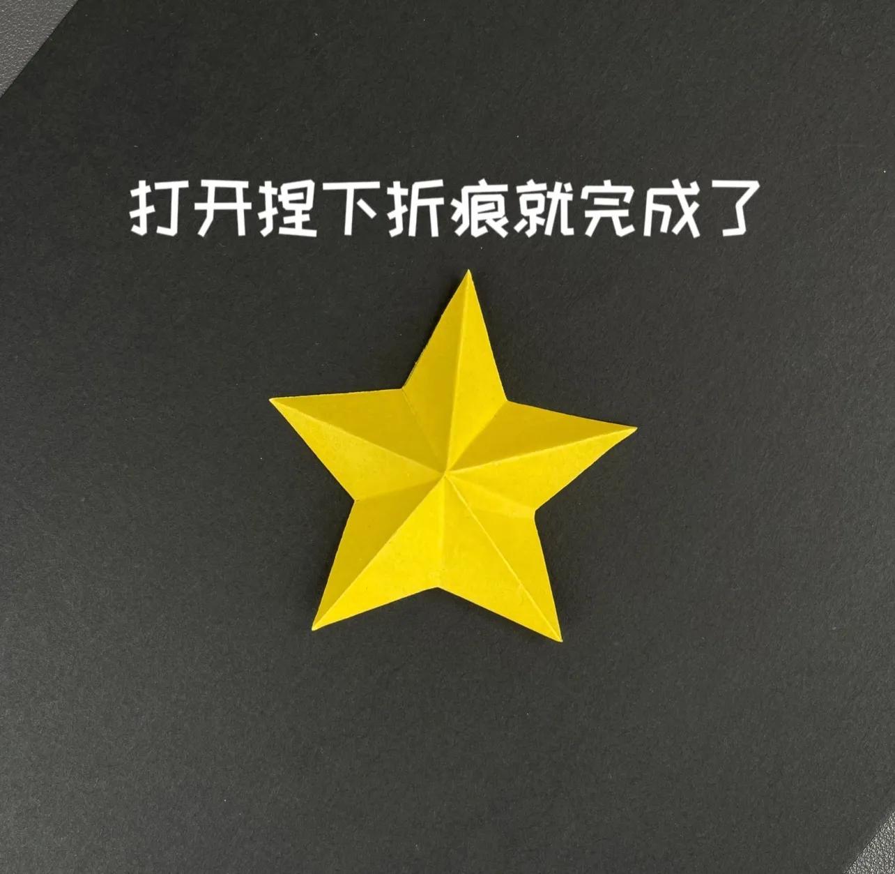 tips:這個手工的難點是這個立體的星星,許多人都不會,上圖是摺疊方法,完成之後,打開捏下摺痕就完成了。