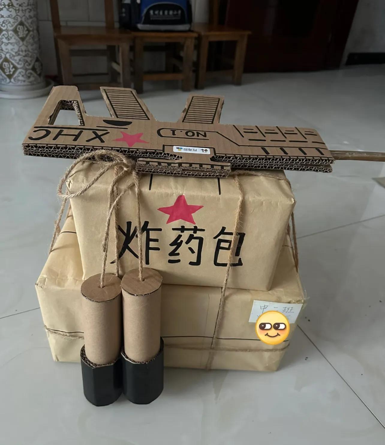 1.牛皮紙包麻繩,寫上炸藥包3個字;