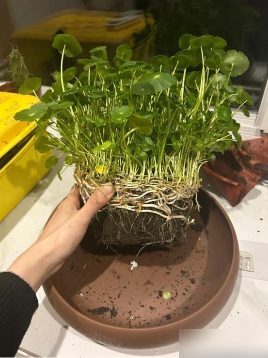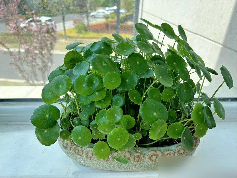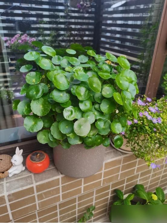 之前我跟風買過一盆繡球,天天查“繡球澆水要澆透還是噴葉”“光照要避直射還是曬 morning sun”,結果不到半個月就枯成了乾柴,扔的時候還心疼那三十塊錢。可銅錢草這玩意兒,真就是“給點陽光就燦爛,給點水就氾濫”的主兒——去年我在小區樓下撿了幾棵野苗,隨便找了個裝醪糟的玻璃罐,倒了半罐自來水,往陽臺窗臺上一放,結果倆月後葉子擠得罐子都快“吐”了,我媽來家裏還笑:“你這是養了盆‘銅錢樹’?”