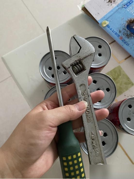 找個喝剩的旺仔罐(實在沒有,奶茶杯、飲料瓶都行),用熱水燙一下剪子挖倆洞(別划着手!