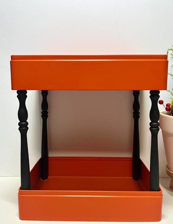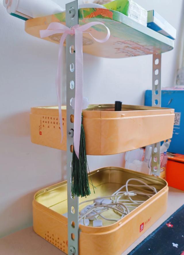 有些月餅盒是鐵質的,而且是多層的。大家就可以像下面這樣做成置物架~