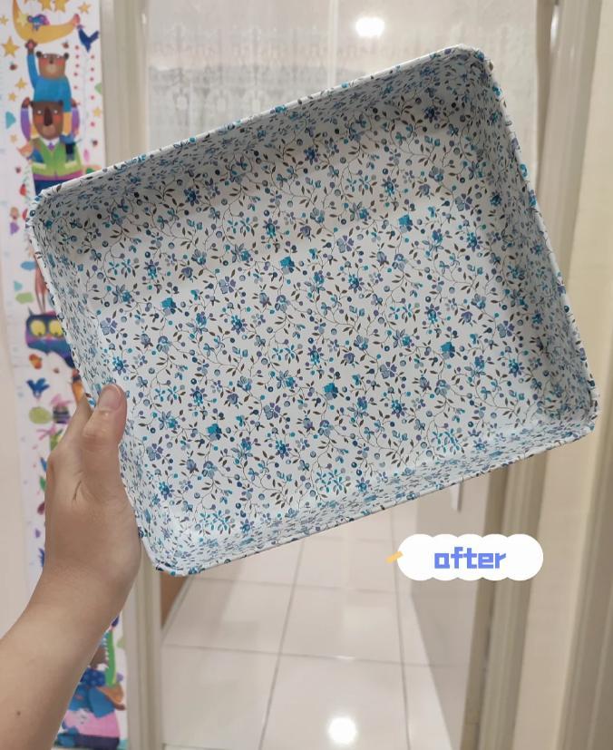 步驟也是很簡單,直接買點漂亮的紙張(搜各種包裝紙就行),準備好膠水,一點點貼在原來的月餅盒上就可以了。