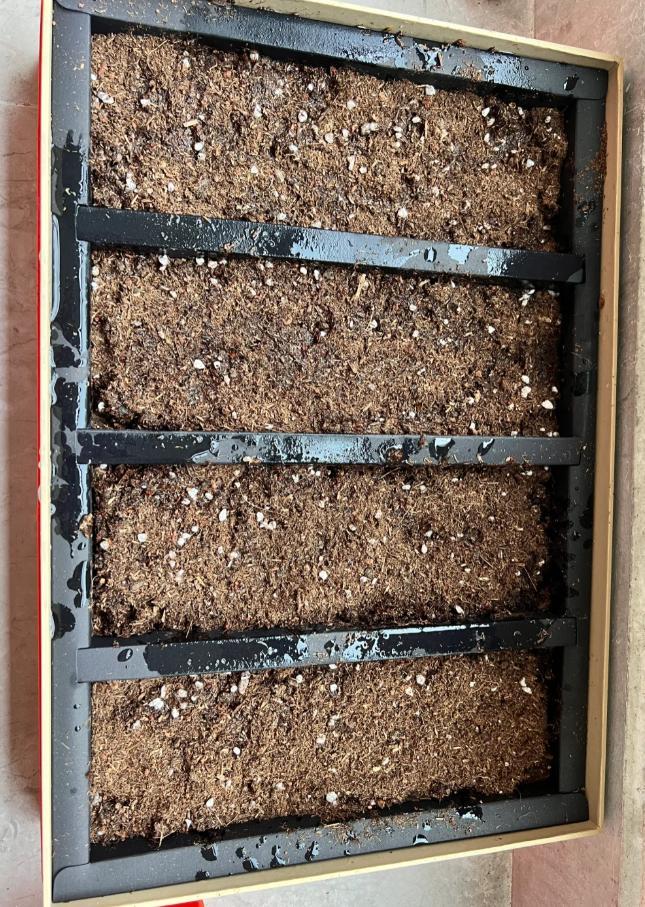 網友剛喫完的月餅盒,不捨得扔掉,直接拿來播種香菜了!