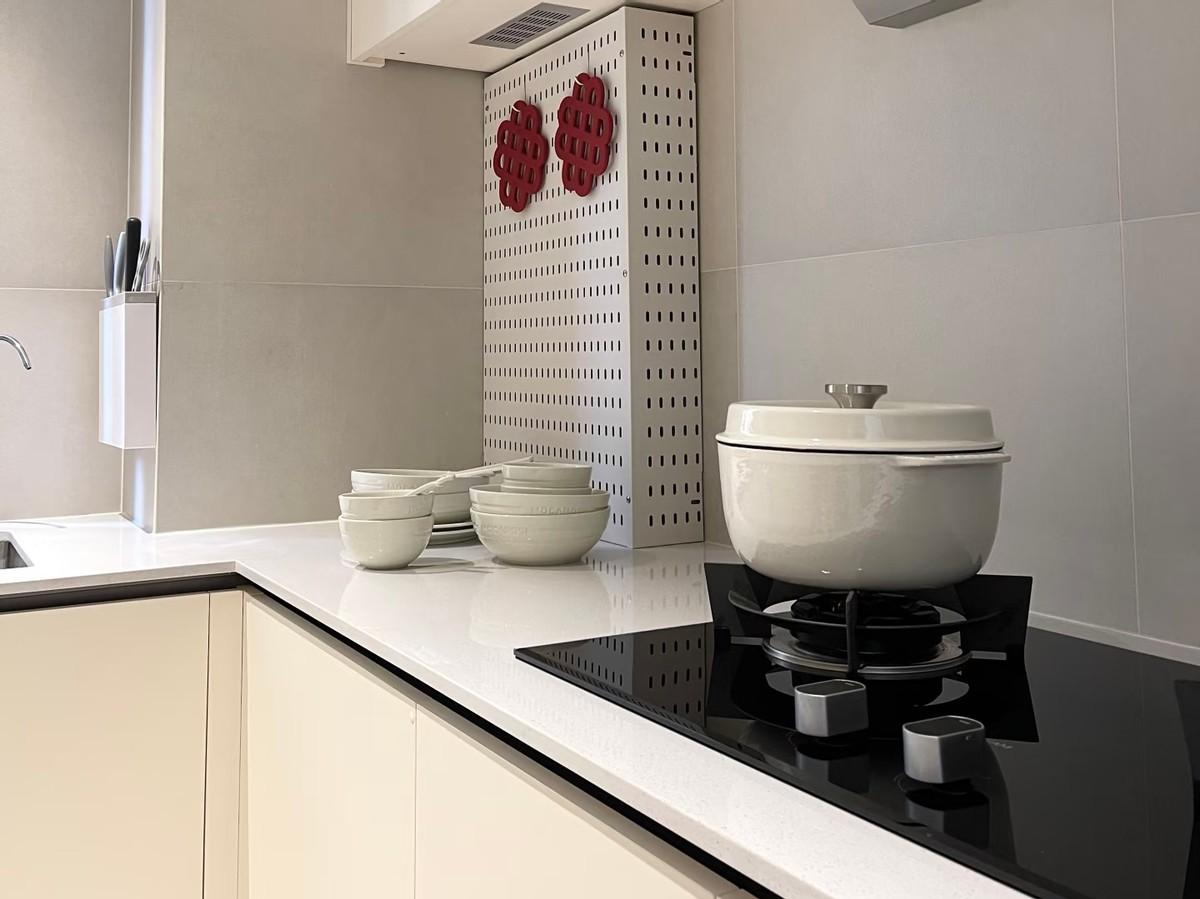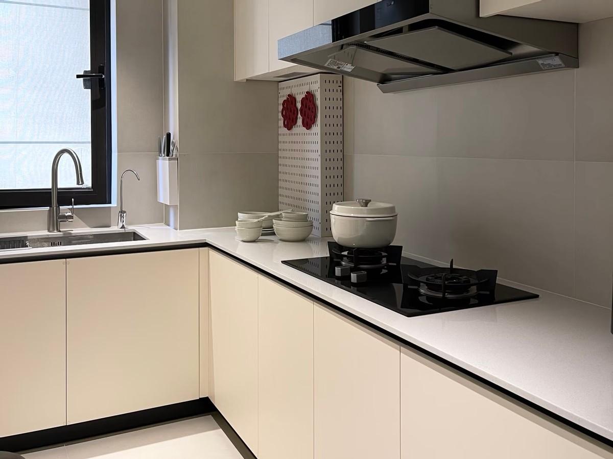 無下掛檯面的現代感極強,能夠讓廚房看起來非常的輕盈和精緻,因爲沒有了沉重的下掛,腿部空間也更自由了,站立烹飪也更加的舒適。