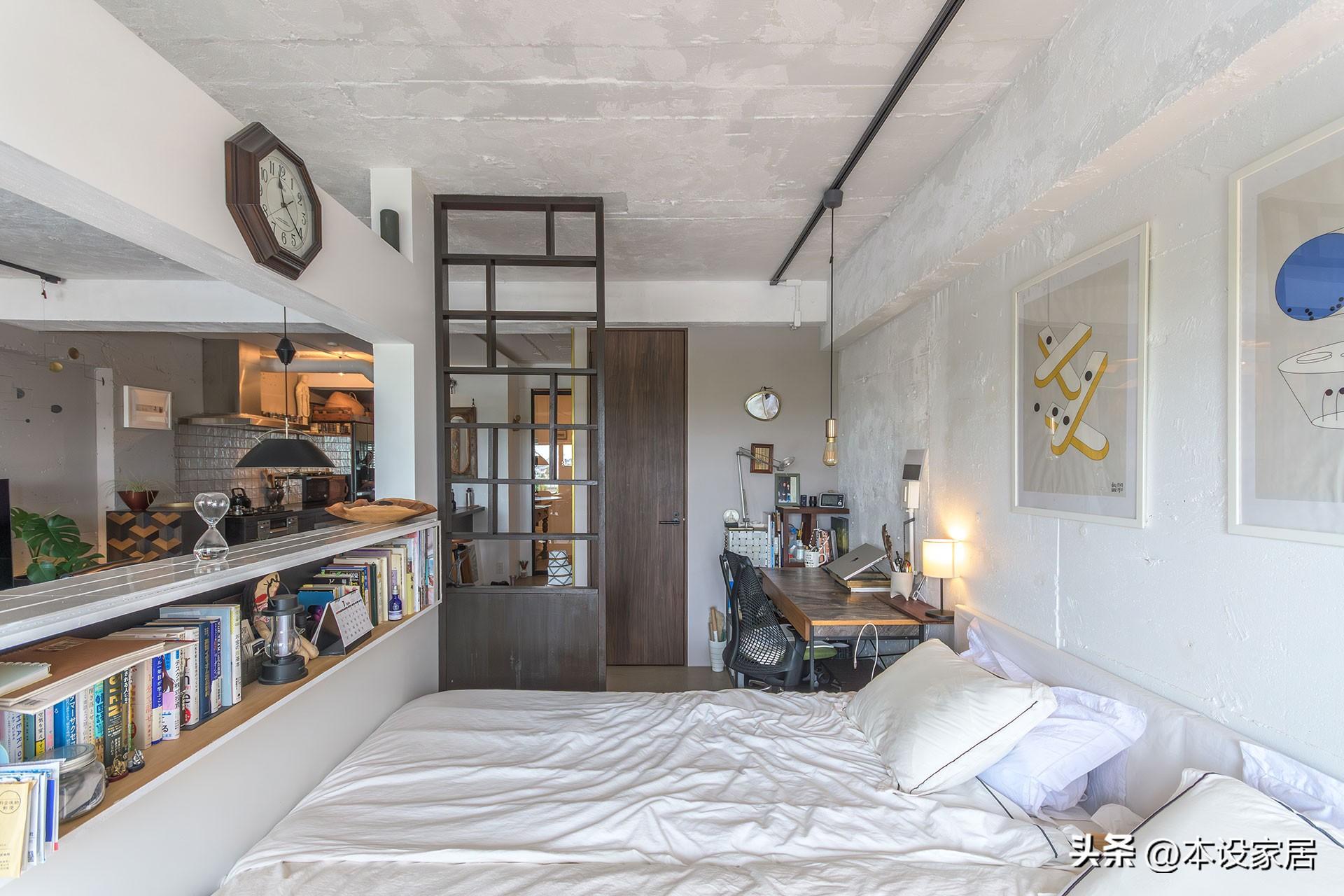 臥室的隔牆不僅沒有做到頂,還帶收納功能,用來放置書籍和小件生活用品,拿取方便,真是長見識了。