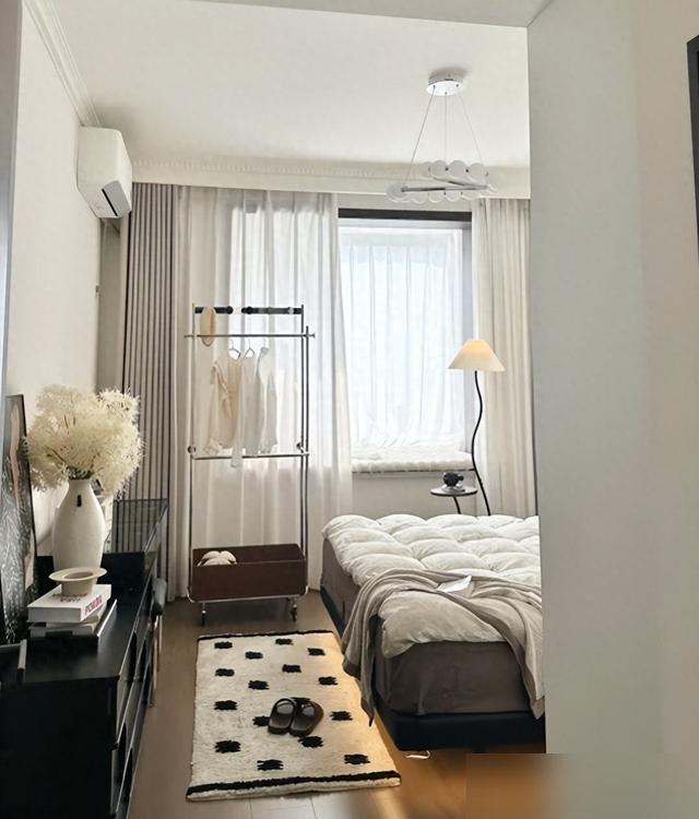 我同事小夏的經歷特典型:去年裝12平的小臥室,一開始鐵了心要放1米8雙人牀,結果擺上之後,從牀邊到衣櫃只剩半米過道,她媽來幫忙收拾時,轉個身都能碰到牀頭櫃。