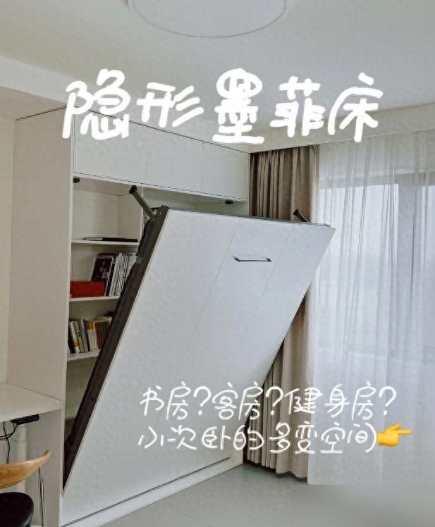 還有樓下鄰居家的“變形牀”更絕:家裏倆娃擠一個小房間,本來想裝上下鋪,結果抬頭能碰到天花板。後來選了墨菲牀——白天收進牆裏,表面是帶書架的裝飾牆,老大寫作業、老二拼積木都能在這兒;晚上拉下來就是1米5的牀,倆娃輪流睡,比上下鋪少了“爬梯子的危險”,關鍵是以後孩子上初中,把牀拆了就是完整的書房,不比固定的上下鋪靈活一百倍?