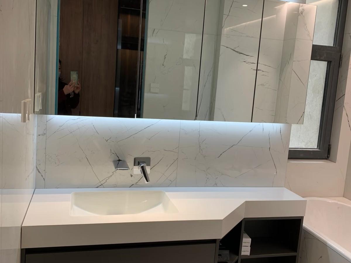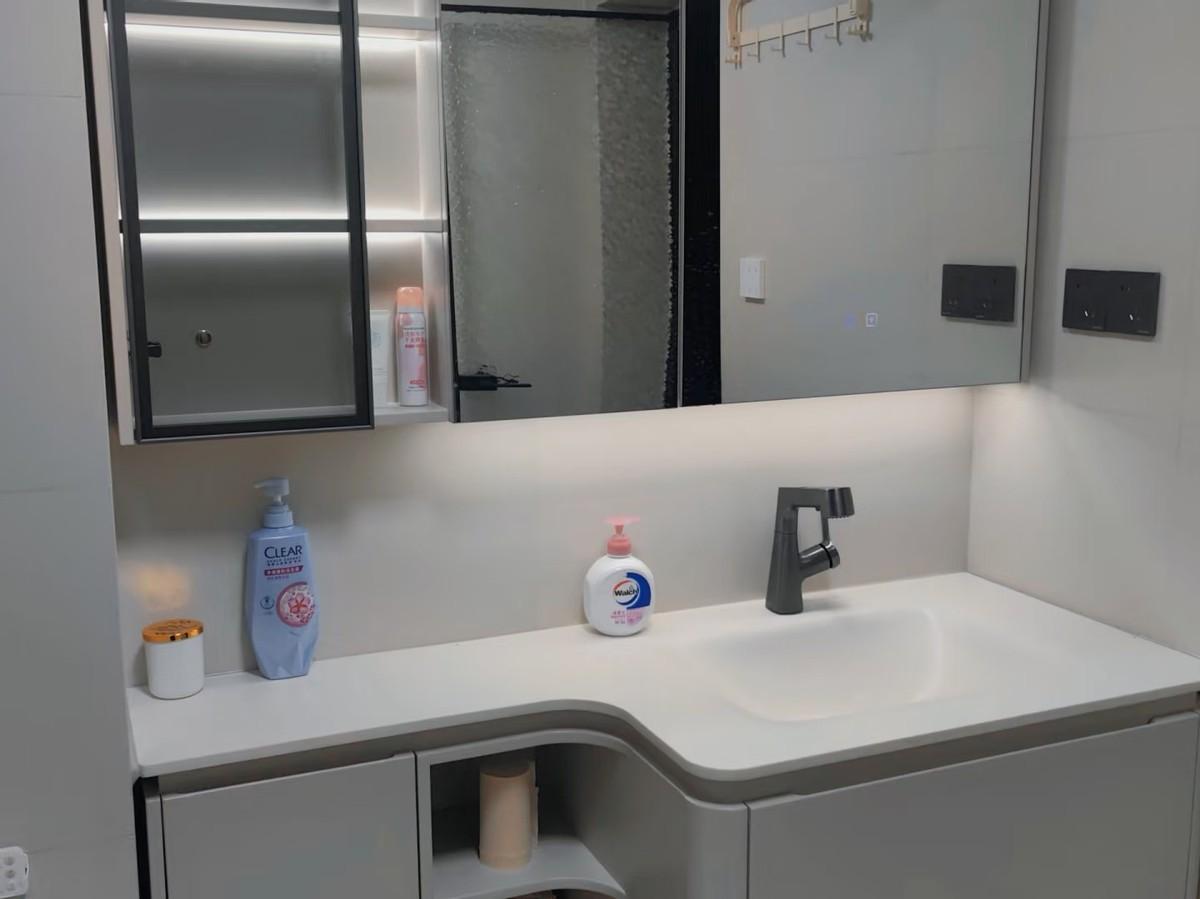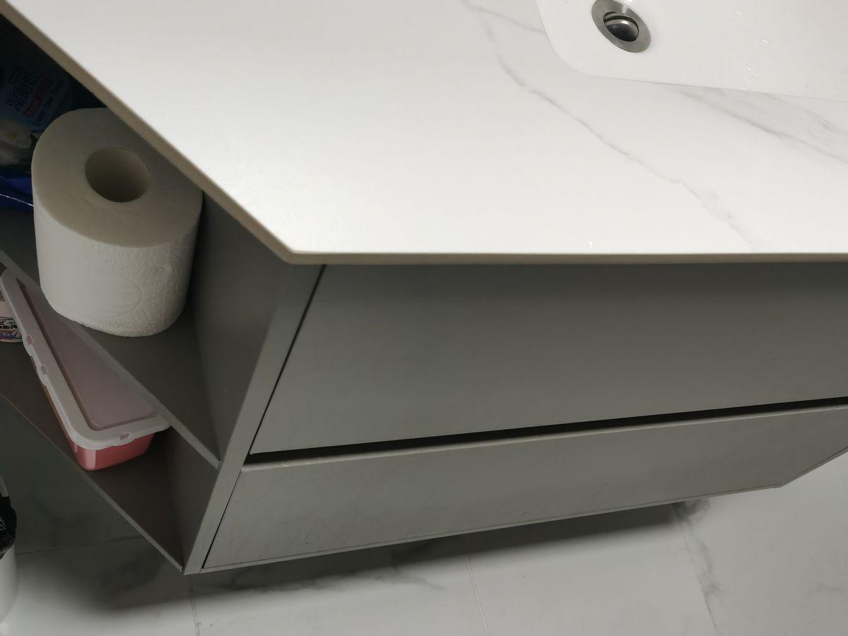 我家這次裝修,特意對洗漱檯面:外露的角,做了非常用心的處理。