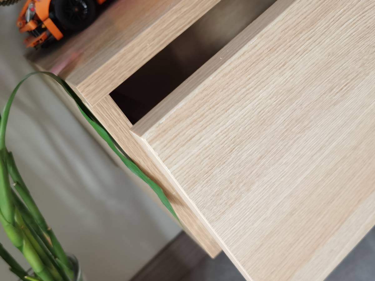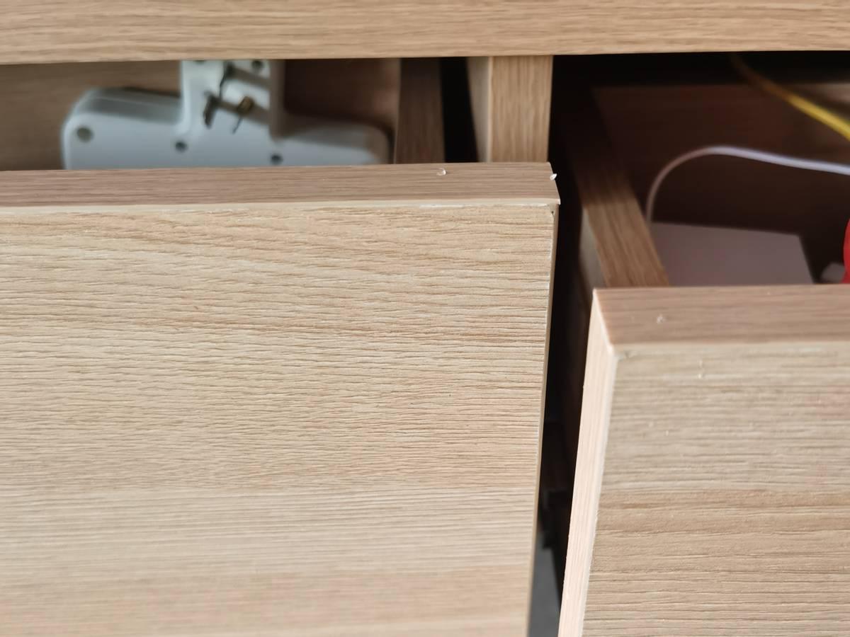 家裏所有的抽屜,建議大家只要是隱藏式看不見把手的,儘量處理外露的角。不僅兩個角,還有這個板材的一個面的棱角,這樣才用得更安心。