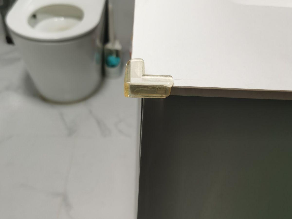 以前,我家的洗漱檯面是沒有做這些外露角的處理的。導致這個角,就外露在外面,而且是鋒利的一個直角,看着都很嚇人。