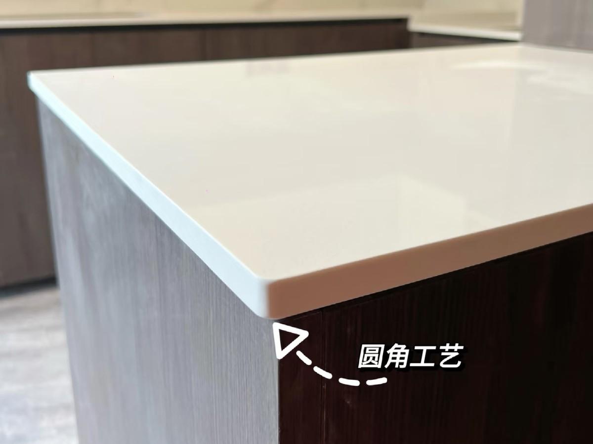 而這一次裝修,就接受了以前的教訓,把這個角做了鈍角處理。其實做法很簡單,就要求廠家將檯面外露的角打磨成一個圓角就可以了。