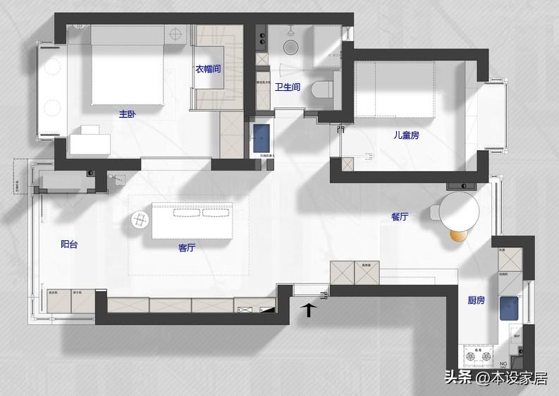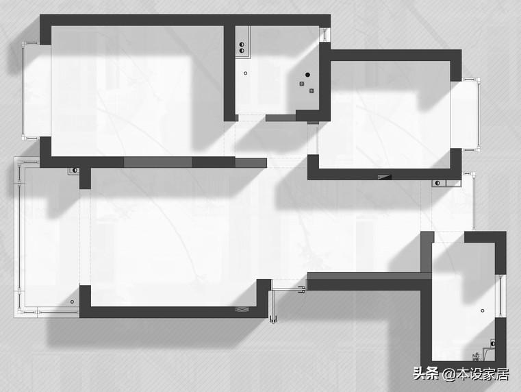 由於空間基本都是承重牆,僅調整了主臥的進門位置,並優化了衛生間的佈局。