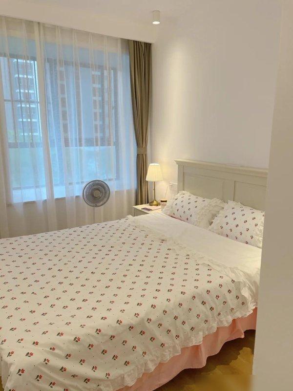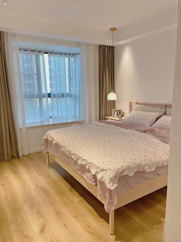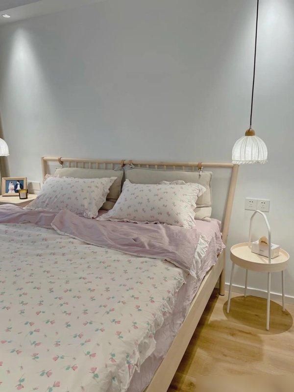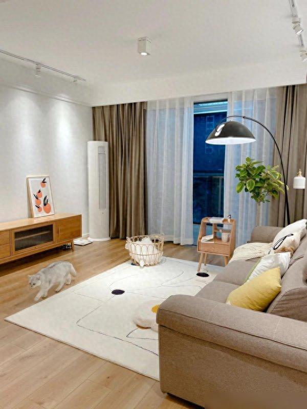 還有那些“有溫度的細節”:電視櫃上的百合竹,葉子長得支棱棱的,像在跟你打招呼;次臥的碎花牀品,不是那種俗豔的大花,是小碎紋,鋪在牀上像撒了把春天的小花瓣;書房的地毯,踩上去軟軟的,加班晚了光腳走也不涼——這些東西不是“網紅款”,不是“博主推薦”,是主人用習慣了的、順眼的,就像穿了十年的棉拖鞋,看着普通,可腳知道有多舒服。