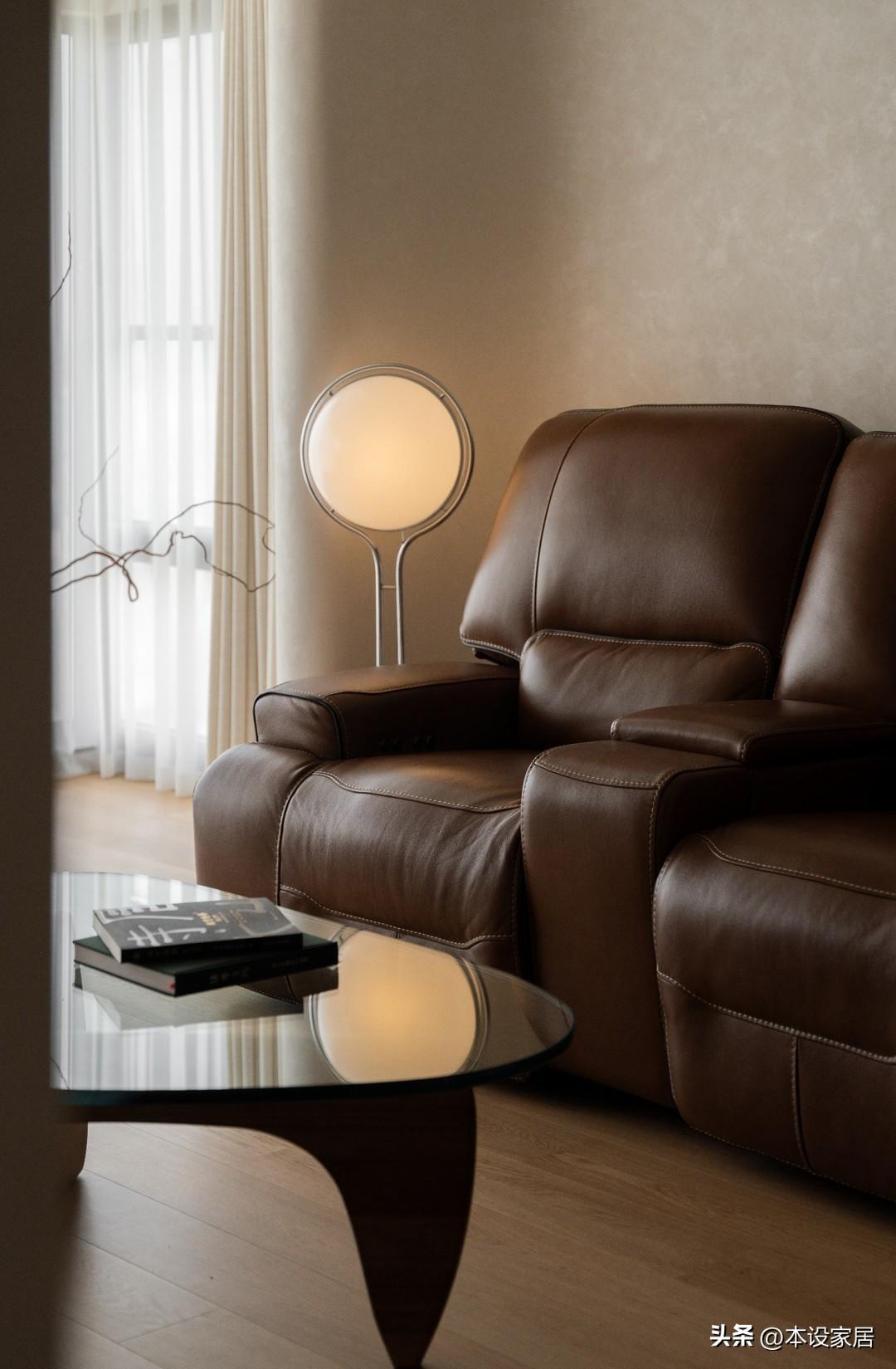 老年人都愛看電視,他們特意配置了坐感舒適的皮質影院電動沙發,搭配造型優雅的茶几和電視,在暖光落地燈的烘托下,營造出一種悠然閒趣、如詩般愜意的家居環境。