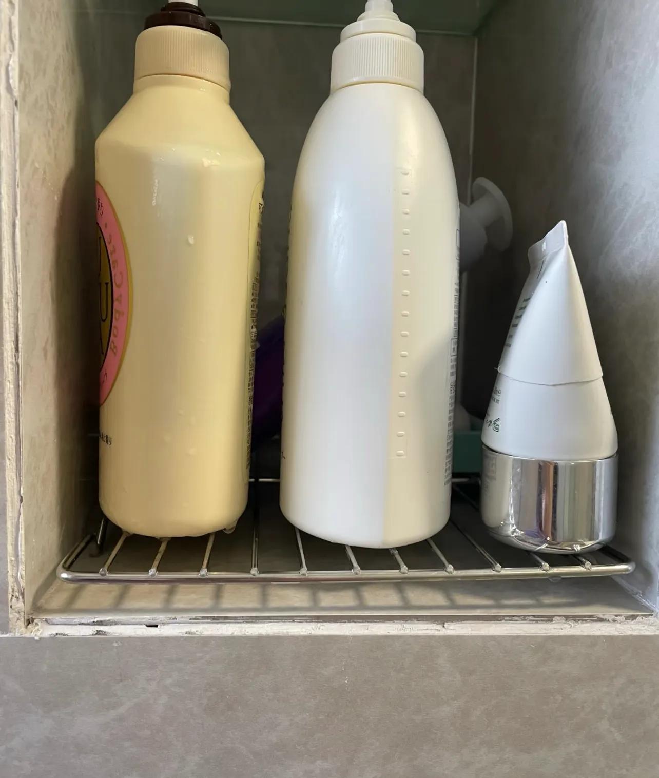 同樣讓人頭疼的還有浴室壁龕,沐浴露、洗髮水用完往裏一放,瓶身帶的水全積在壁龕裏或玻璃檯面上,時間一長留垢發黴,看着都噁心。