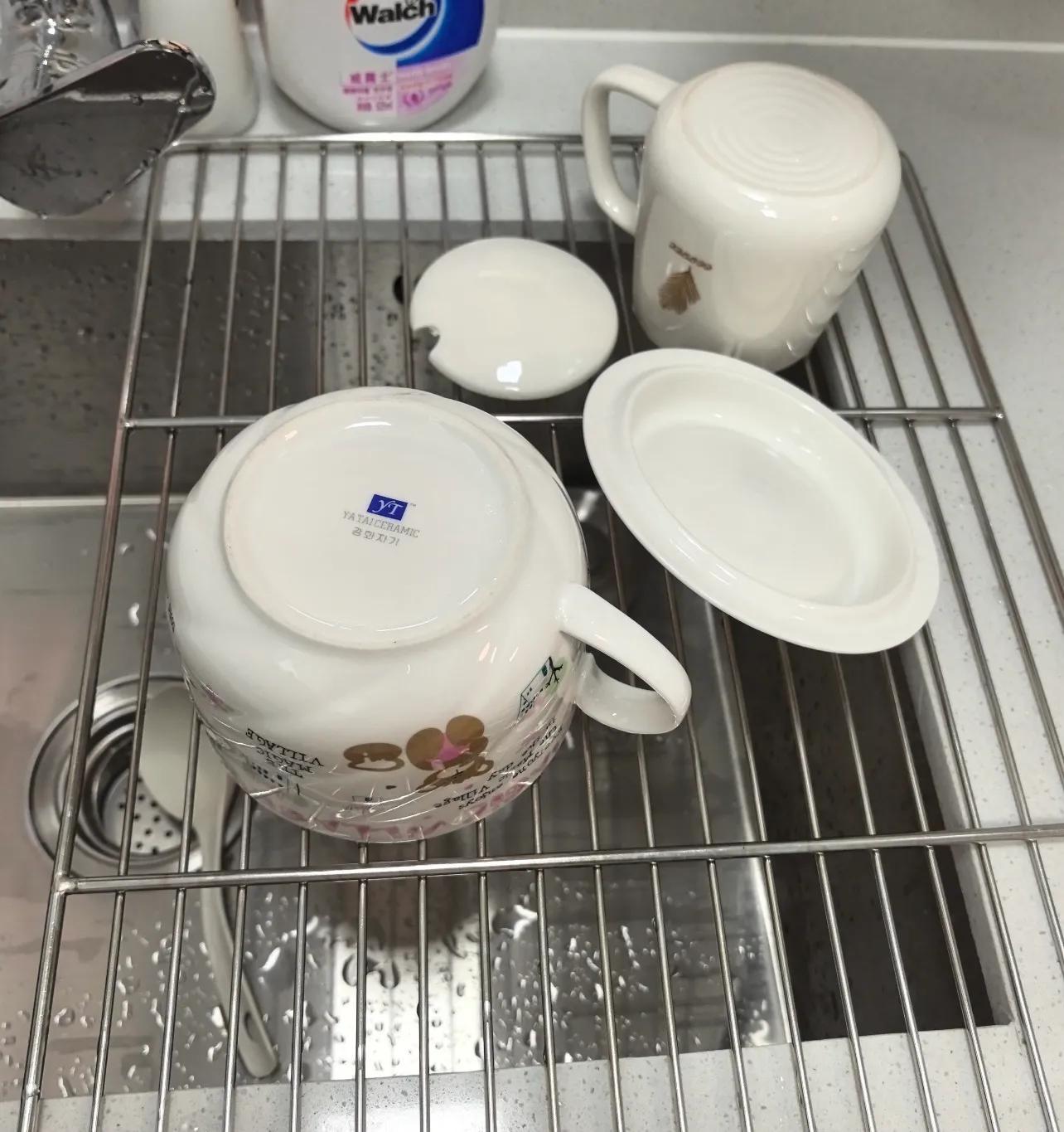 還有碗盤餐具,洗完倒扣在網格上,其實比放在傳統瀝水籃裏堆在一起幹得快,還不佔桌面地方,你說它不是廚房助手誰是?