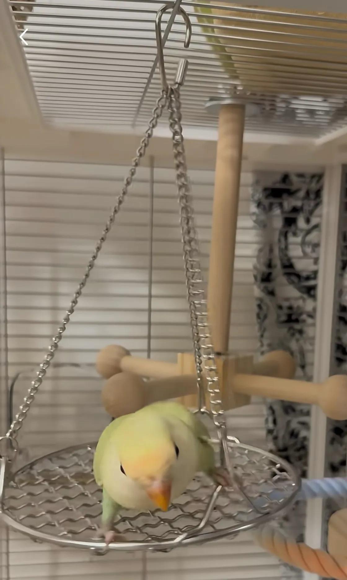 這可是專爲小鳥設計的降溫鞦韆,用鏈條穿起燒烤網掛上,夏天站在涼涼的金屬上,爪子再也不怕燙。