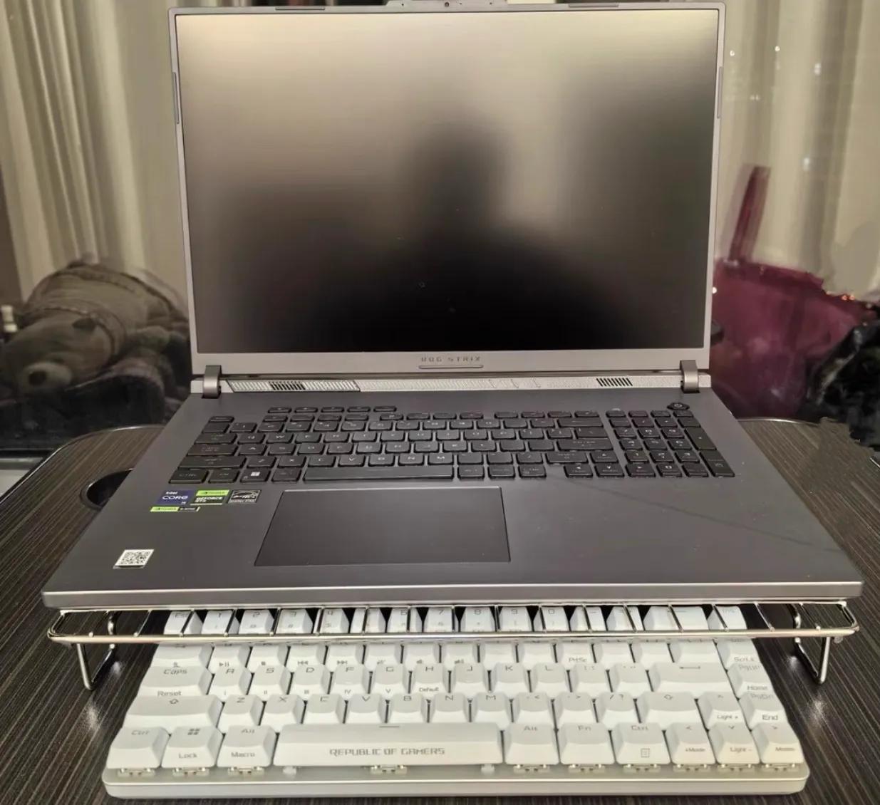 我家的燒烤架,則在書桌上煥發了第二春,當電腦支架用,散熱完全ok。