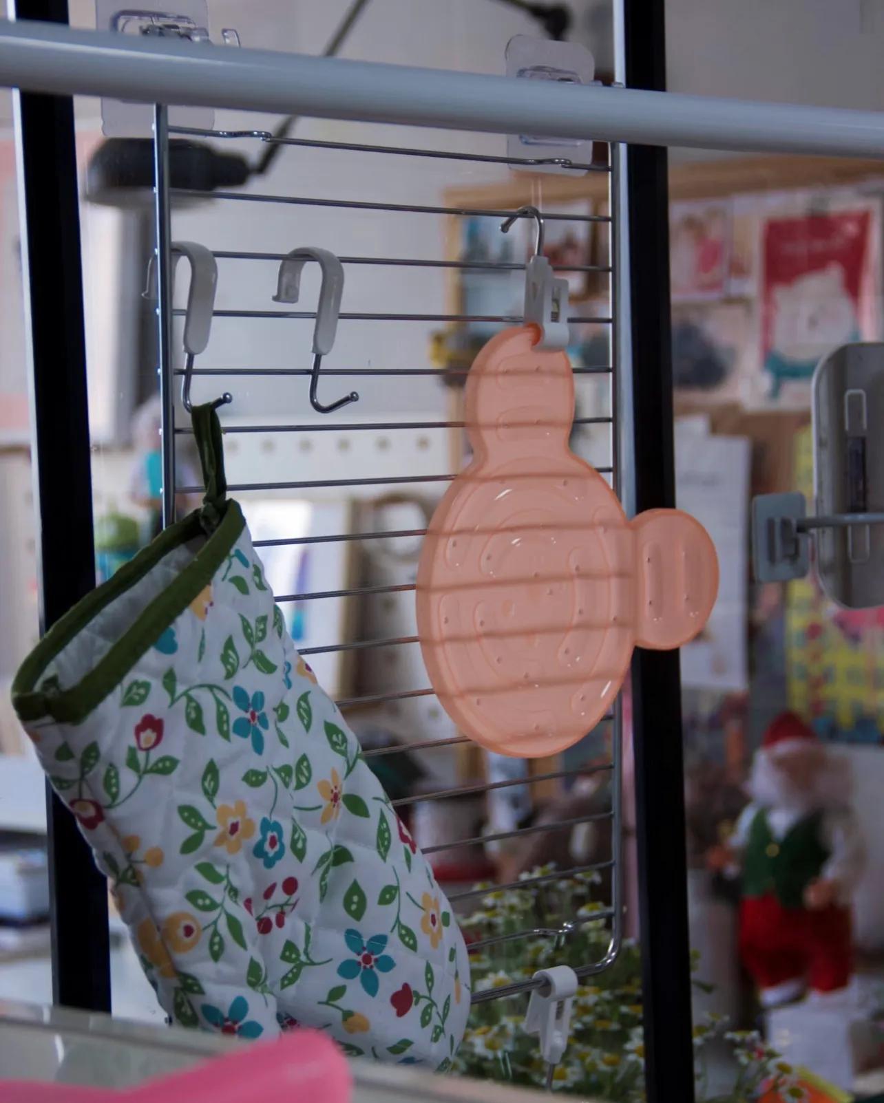最好的是用來收納廚具,鍋鏟湯勺,手套、隔熱墊……既有煙火氣,又有文藝範兒,比掛一根繩子最後擠作一團好用多了!