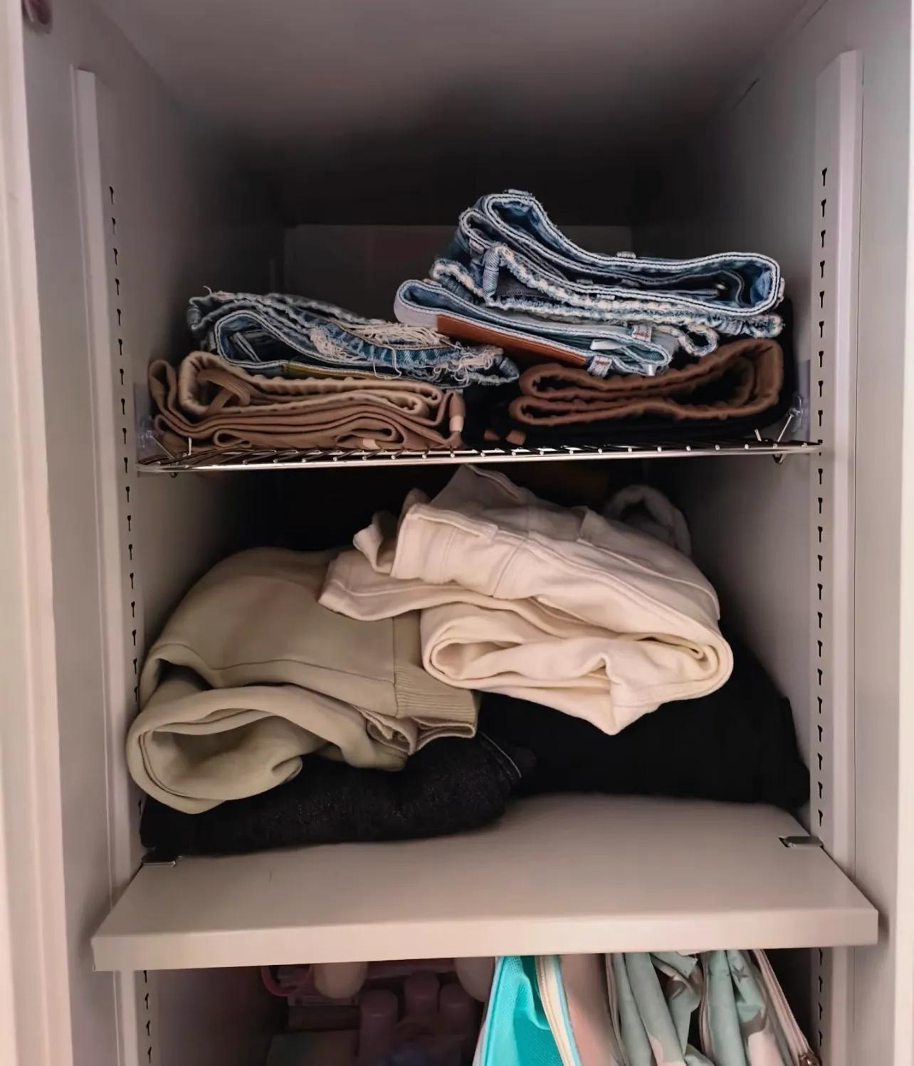說起衣櫃的煩躁,就在於每一格上面的空間通常都是浪費着的,有時候好不容易把衣服疊整齊,一拿底下的,上面的全跟着亂套!