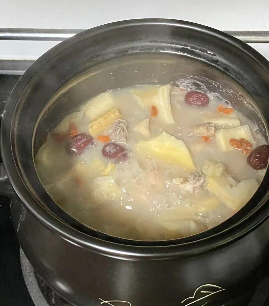 - 放入少許枸杞和鹽在煲15分鐘,關火